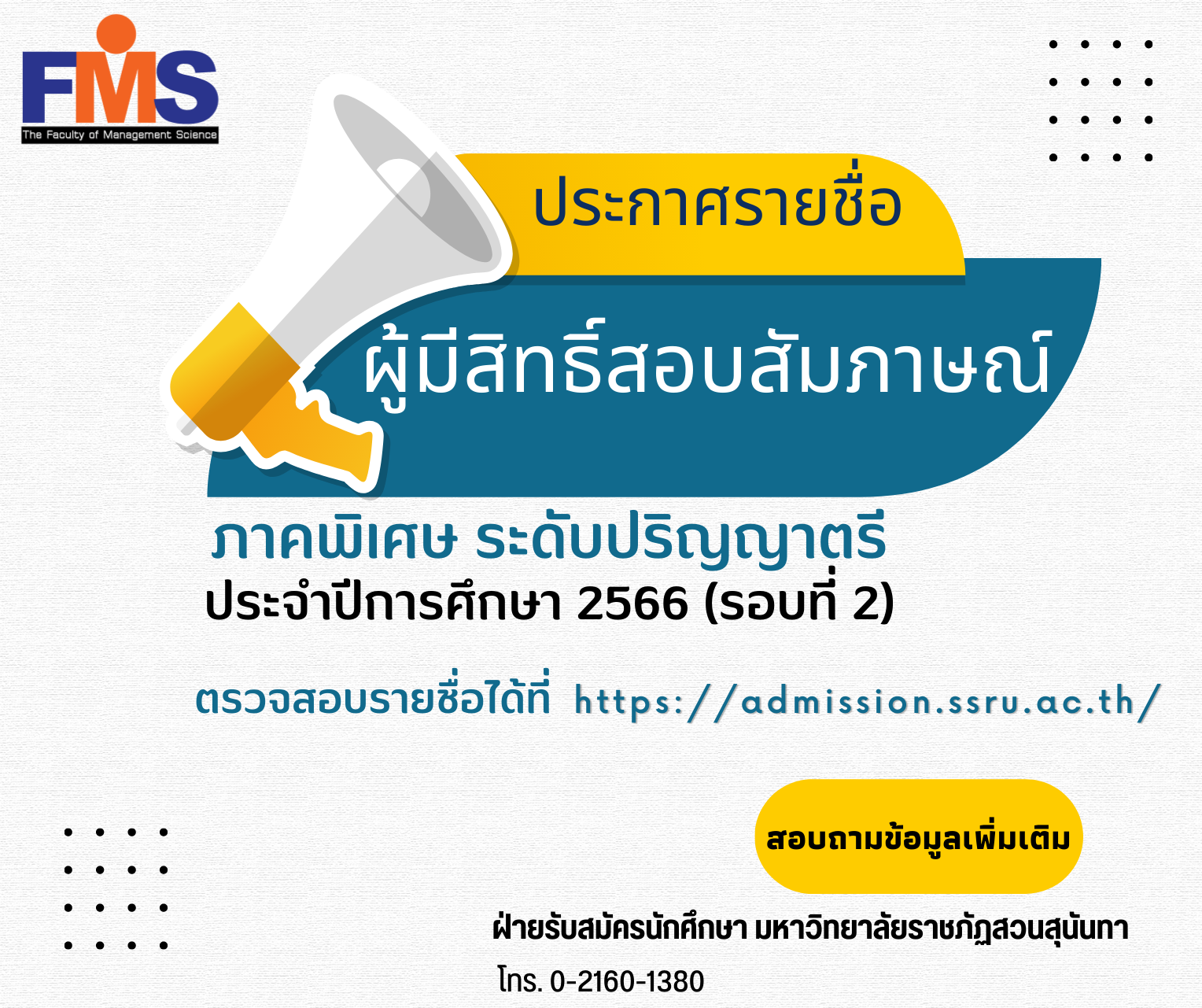 Suan Sunandha Rajabhat University Announcing the list of eligible candidates for the undergraduate special interview examination for the year 2023 (Round 2). You can check the list at https://admission.ssru.ac.th/login