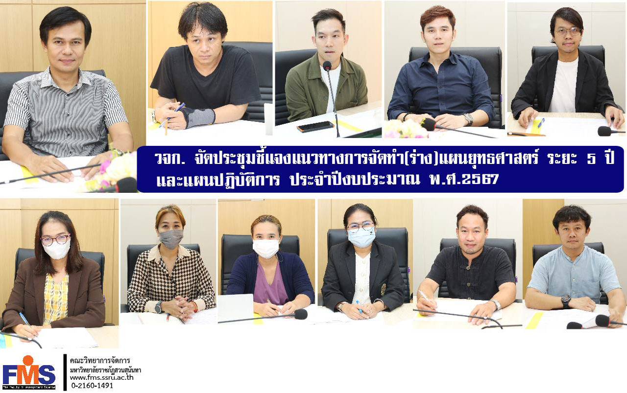 On June 16, 2023, Planning and Quality Assurance Department Faculty of Management Sciences Suan Sunandha Rajabhat University Organize a meeting to clarify the guidelines for preparing (draft) a 5-year strategic plan (2023-2027), action plan Fiscal year 2024 and (draft) annual work plan, Fiscal year 2024, with the dean of all departments head of all divisions Attended the meeting at Ruamjai Management Meeting Room Faculty of Management Sciences.
