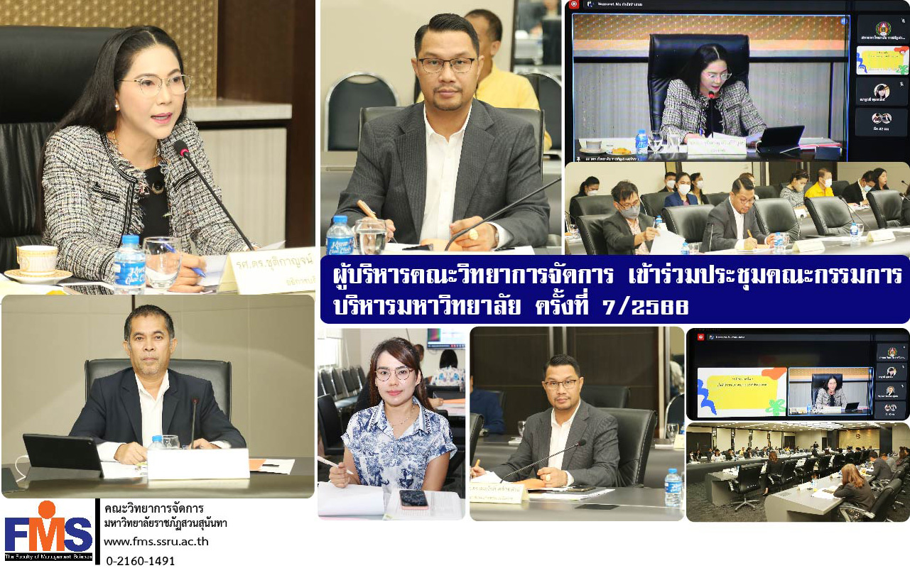 On July 10, 2023 at 8:30 a.m., Assistant Professor Dr. Somsak Klaysung, Dean of the Faculty of Management Sciences together with Ms. Jinjutha Srihera, Head of the Dean's Office, Faculty of Management Science Attended the University Executive Committee Meeting No. 7/2023 with Associate Professor Dr. Chutikarn Sriwiboon, President of Suan Sunandha Rajabhat University. presided over the meeting There are university administrators, faculties, departments, campuses, and educational centers. Join the meeting at the university council room, Building 31, 5th floor and online meeting with the Google Meet program.