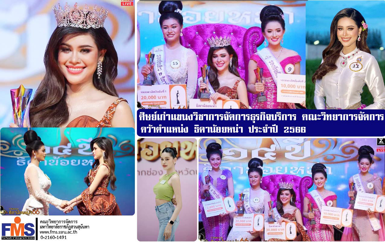 Faculty of Management Sciences, Suan Sunandha Rajabhat University congratulations to "Satang" Ms. Sasipapa Papontethanaphum Service Business Management Alumni Faculty of Management Sciences, Suan Sunandha Rajabhat University on the occasion of winning the title of Noi Na daughter of the year 2023 on the evening of July 8, 2023 at the field next to the sack weaving factory Mittraphap Sai Kao Road, Pak Chong District, Nakhon Ratchasima Province.