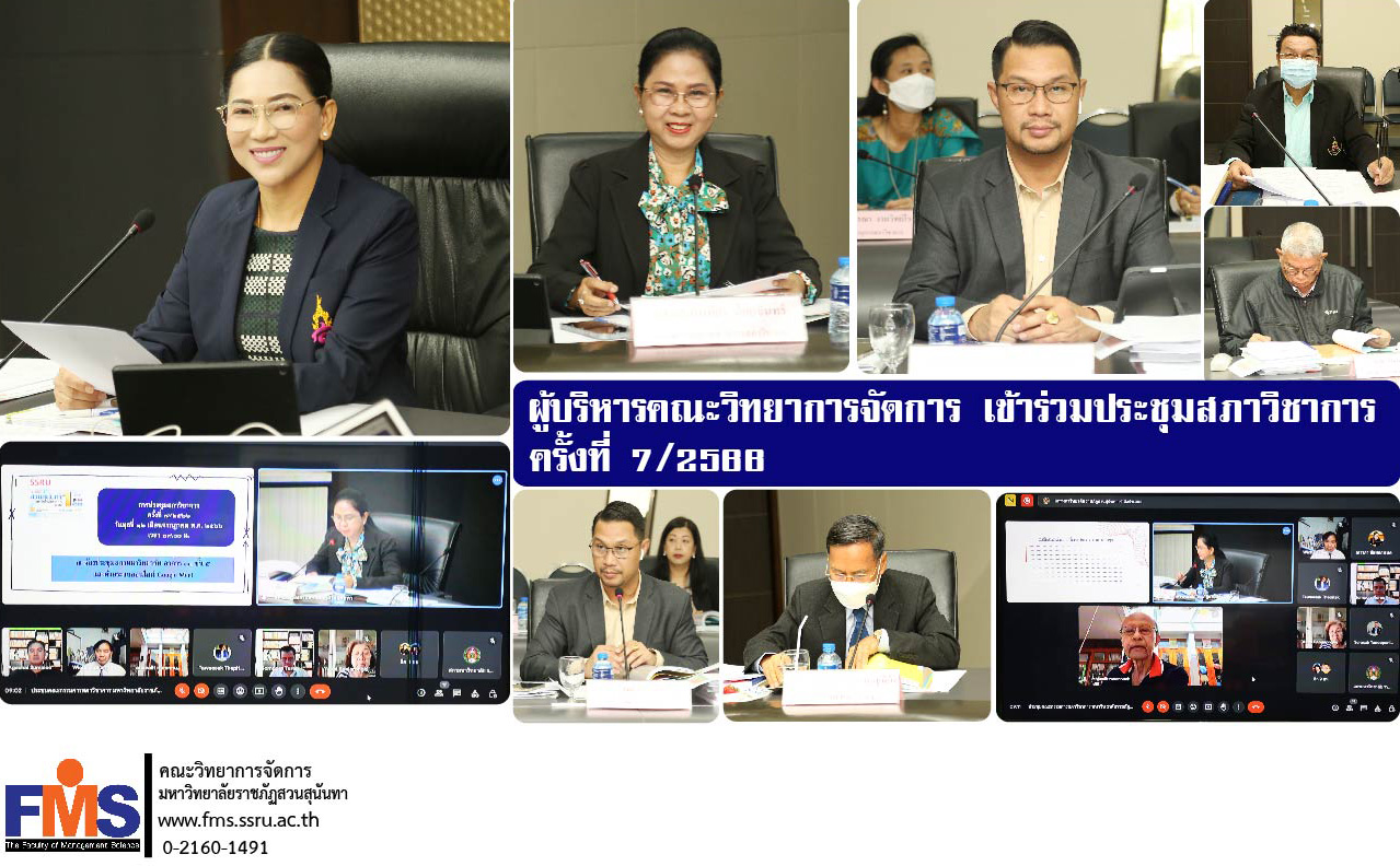 On July 12, 2023 at 9:00 a.m., Assistant Professor Dr. Somsak Klaysung, Dean of the Faculty of Management Science attended the Academic Council Meeting No. 7/2023 with Associate Professor Dr. Chutikan Sriwiboon, President of Suan Sunandha Rajabhat University presided over the meeting along with Associate Professor Dr. Nantiya Noichan, Vice President for Academic Affairs at the university council room, Building 31, 5th floor and online meetings through the Google Meet program.