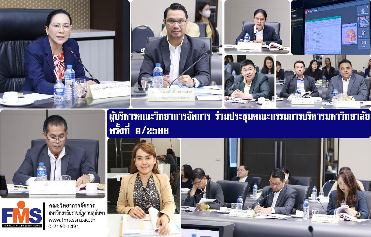 On September 11, 2023 at 9 a.m. Assistant Professor Dr. Somsak Klaysung, Dean of the Faculty of Management Science along with Miss Jinjutha Srihera, Head of the Dean's Office, Faculty of Management Science attended the University Executive Committee meeting No. 9/2023 with Associate Professor Dr. Chutikarn Sriwiboon, President of Suan Sunandha Rajabhat University. Chairing the meeting There are university administrators, faculties, departments, campuses, and educational centers. Attend the meeting at the University Council meeting room, Building 31, 5th floor, and meet online with the Google Meet program.