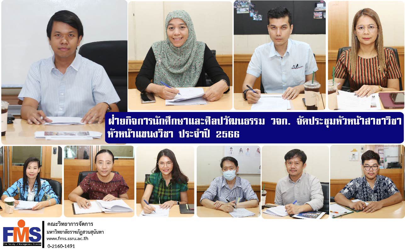 On December 8, 2023 at 10: a.m. Student Affairs and Arts and Culture Department Faculty of Management Science organize a meeting with subject heads/subject heads with Assistant Professor Dr. Pongsawee Supanonth, Deputy Dean for Student Affairs and Arts and Culture. Chairing the meeting To clarify the operation of organizing activities For the fiscal year 2024, there is a subject head/head of the subject area. and personnel in student affairs and arts and culture Attend the meeting at the student club meeting room. Faculty of Management Science.