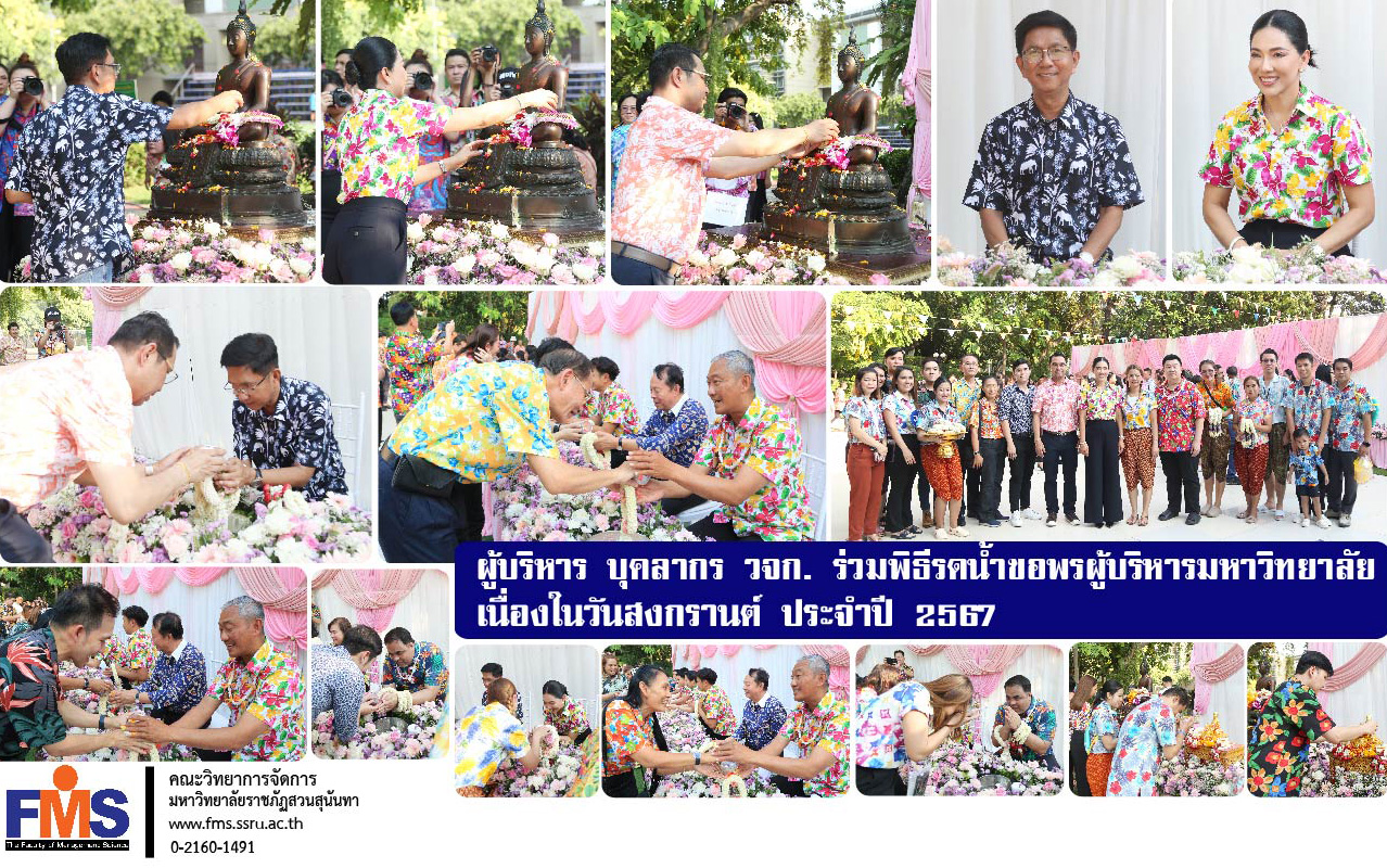 On April 4, 2023 at 4:00 p.m., Assistant Professor Dr. Somsak Klaysung, Dean of the Faculty of Management Science along with the deputy dean, professors, head of the dean's office and faculty academic support personnel Participate in the Buddha Sunandhakorn bathing ceremony and a replica of Her Majesty Queen Sunandha Kumariratana Phraborom Ratchathewi. and a water pouring ceremony to ask for blessings from executives on Songkran Day 2024, which was honored by Associate Professor Dr. Luedech Girdwichai, President of Suan Sunandha Rajabhat University Council Associate Professor Dr. Chutikarn Sriwiboon, President of Suan Sunandha Rajabhat University along with the Vice Rector and administrators from the campus Various agencies Organized by Suan Sunandha Rajabhat University in front of the Phra Hall area. Suan Sunandha Rajabhat University.