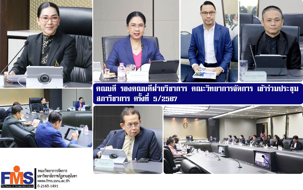 On May 15, 2024 at 9:00 a.m., Assistant Professor Dr. Somsak Klaysung, Dean of the Faculty of Management Science, along with Professor Dr. Kritsana Chuerchainat, Deputy Dean for Academic Affairs. Attended the Academic Council Meeting No. 5/2024 with Associate Professor Dr. Chutikarn Sriwiboon, President of Suan Sunandha Rajabhat University. Chairing the meeting Joined by Associate Professor Dr. Nantiya Noichan, Vice President for Academic Affairs. The meeting had important agenda items. and other related agenda items at the University Council meeting room, Building 31, 5th floor, and online meetings via the Google Meet program.