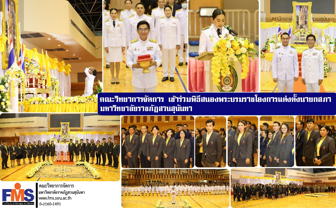 On October 1, 2024, the Faculty of Management Science, Suan Sunandha Rajabhat University, led by Assistant Professor Dr. Somsak Klaysung, Dean of the Faculty of Management Science, along with Deputy Deans, lecturers, and academic support personnel of the Faculty, participated in the ceremony to receive the royal command to appoint the President of Suan Sunandha Rajabhat University Council. Associate Professor Dr. Luedech Girdwichai opened a flower tray to pay homage to receive the royal command and the necklace of the position of the University Council President. The university executives, led by Associate Professor Dr. Chutikarn Sriviboon, President of Suan Sunandha Rajabhat University, read the announcement of the Prime Minister's Office on the appointment of the President of Suan Sunandha Rajabhat University Council. The university's executives also attended the ceremony. At the same time, all representatives of the Faculty of Management Science congratulated the president of the university council and took a commemorative photo together at the Suan Sunandha Health and Sports Center Building, 4th floor, Suan Sunandha Rajabhat University.
