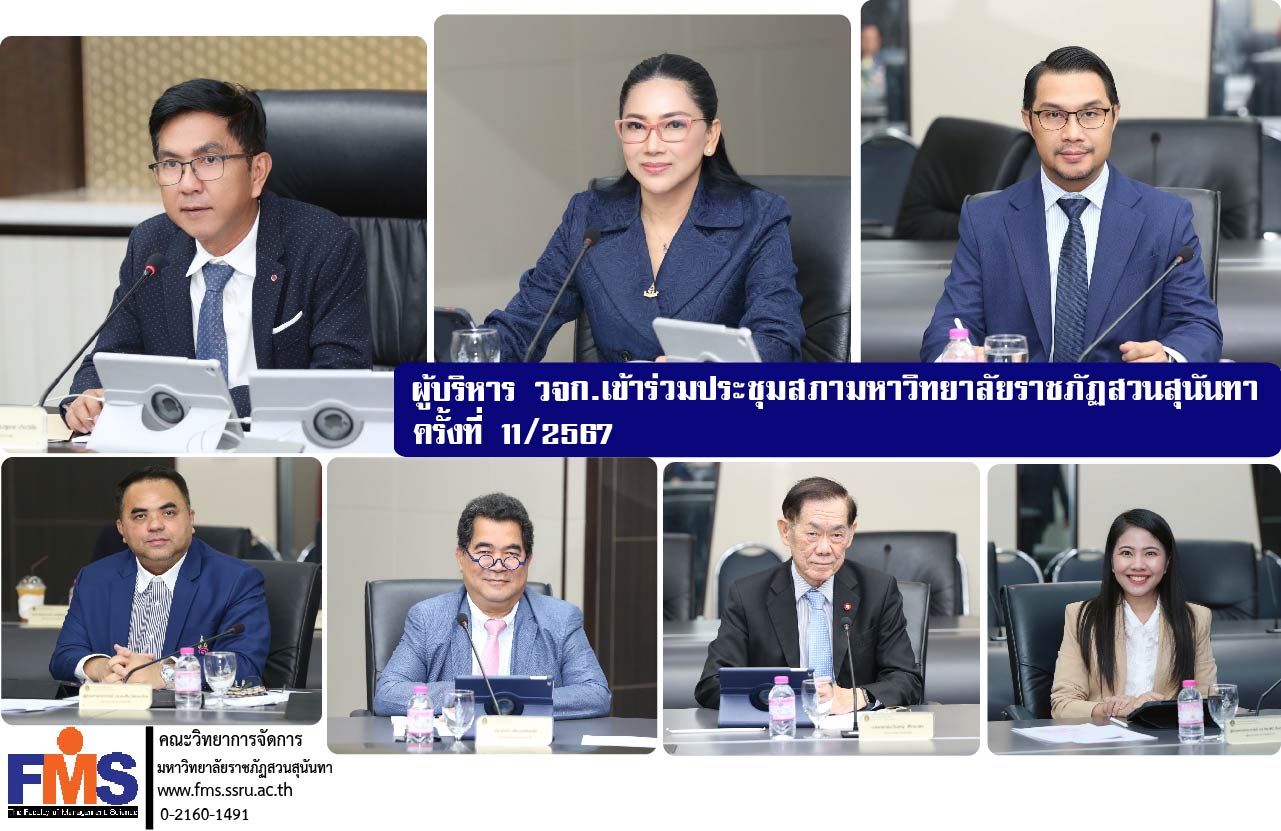 On November 27, 2024 at 1:00 p.m., Assistant Professor Dr. Somsak Klaysung, Dean of the Faculty of Management Science (University Council Member, Representative of Executives) attended the University Council Meeting No. 11/2024 chaired by Associate Professor Dr. Luedech Girdwichai, Chairman of the Suan Sunandha Rajabhat University Council, along with Associate Professor Dr. Chutikarn Sriviboon, President of Suan Sunandha Rajabhat University. The University Council Committee also attended the meeting to consider and approve and propose issues for consideration in various agendas for the administration and driving of the university at the University Council Meeting Room, Building 31, 5th Floor, with an online meeting (Google Meet).