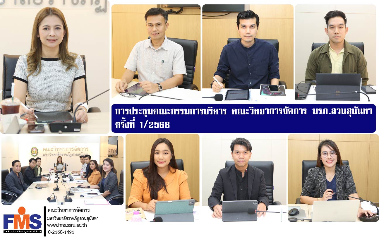 On January 23, 2025 at 1:30 p.m., the Faculty of Management Science, Suan Sunandha Rajabhat University, held the Faculty Executive Committee Meeting No. 1/2025, chaired by Assistant Professor Dr. Chutima Klaysung, Dean of the Faculty of Management Science, with various important agenda items being attended by the Deputy Deans and Heads of the Dean's Offices at the Ruamjai Management Meeting Room 1, Faculty of Management Science.