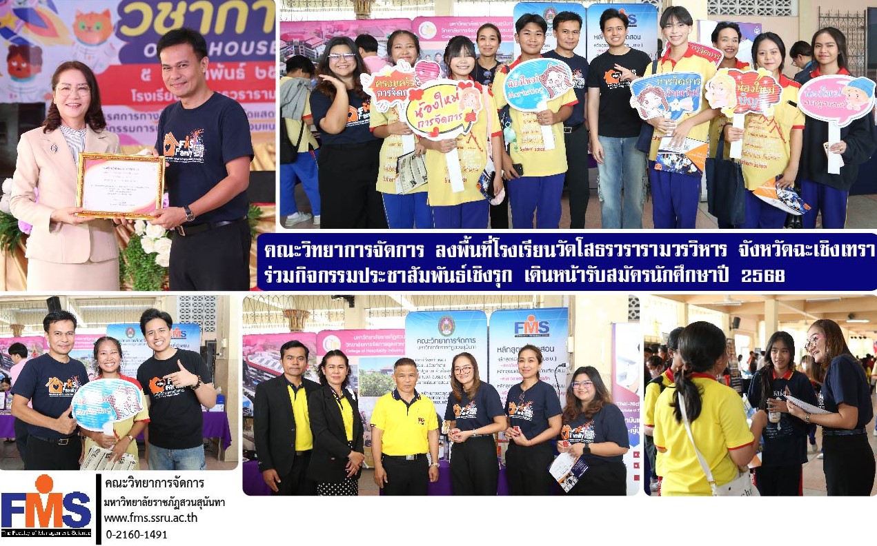 On February 5, 2025, the Faculty of Management Science, Suan Sunandha Rajabhat University, led by Assoc. Prof. Dr. Pitimas Banlue, Deputy Dean for Administration, along with the staff team, went to the area to join the Open House activity, Sothon Academic House 2024, Wat Sothon Wararam Worawihan School, Chachoengsao Province, to implement a proactive public relations project in accordance with the proactive public relations policy of Assistant Professor Dr. Chutima Klaysung, Dean of the Faculty of Management Science, to publicize information on the courses offered in the Faculty to students, provide educational guidance in the Faculty of Management Science, Suan Sunandha Rajabhat University, to prepare for the recruitment of new students in 2025, which was warmly welcomed by the school director, teachers, and students who joined the activity at the multipurpose building, Wat Sothon Wararam Worawihan School, Chachoengsao Province.