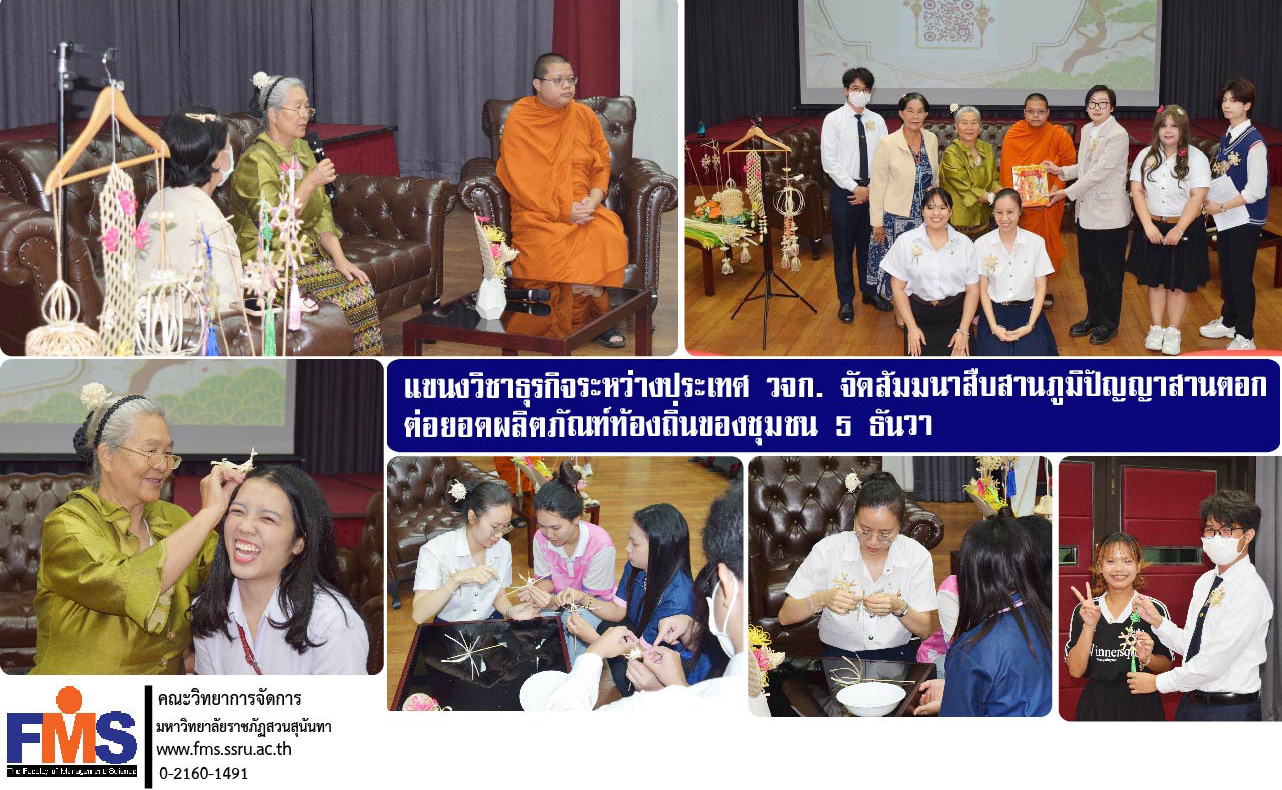 On February 27, 2025, the International Business Program, Faculty of Management Science, organized a seminar on the topic of “Inheriting the Wisdom of Tok Weaving and Developing Local Products of the 5 December Community”, which is part of the teaching of the International Business Seminar course, led by Assistant Professor Dr. Pichaman Chansuchai, the project advisor. The purpose of the seminar was to promote and provide opportunities for students to learn through direct experiences, allowing participants to gain both theoretical knowledge and practical skills, which will be beneficial for further development in the future. We were honored to have Phra Kriang (Phra Kiatchai Kittiwatthametee Thawibut) and Ms. Phanngam Samana, owners of Kiatchaisin Sin Lanna business, as speakers to provide knowledge about the history of the 5 December community, the importance and meaning of Tok weaving as a local wisdom heritage, guidelines for developing handicrafts into commercial products, and inspiration for continuing and developing businesses from traditional wisdom. In addition, seminar participants had the opportunity to try out Tok weaving by themselves and learn the basic processes. The seminar was held at the Mini Theater, Building 57, 6th floor, Faculty of Management Science.