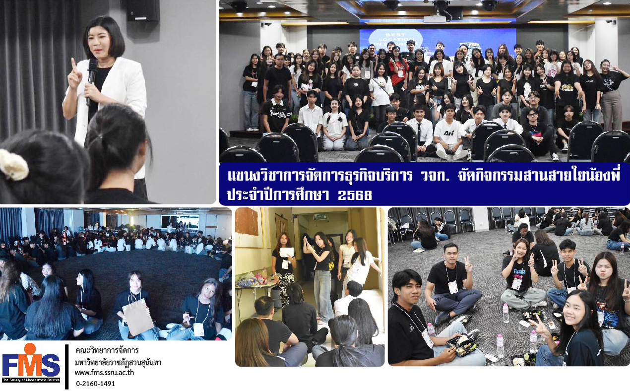 The Service Business Management Program, Faculty of Management Science, organized a junior-senior bonding activity for the academic year 2025 to create warmth and connection between seniors, juniors, and faculty. The atmosphere was filled with warmth and friendship at the Suwaphak Niwet Conference Room (5724), Faculty of Management Science, Suan Sunandha Rajabhat University.