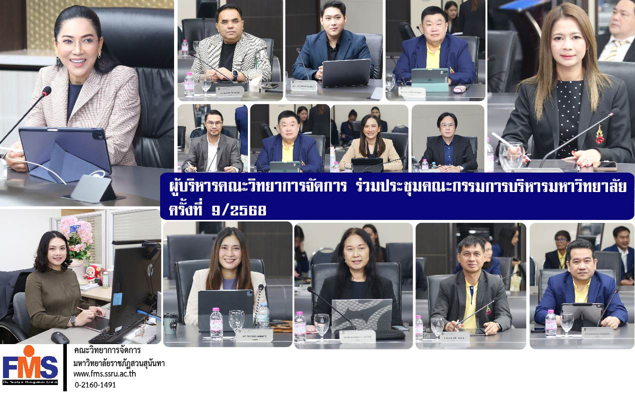 Assistant Professor Dr. Chutima Klaysung, Dean of the Faculty of Management Science, and Ms. Charintip Hirannukroh, Acting Head of the Faculty of Management Science Office, attended the University Executive Committee Meeting No. 9/2025, chaired by Associate Professor Dr. Chutikarn Sriviboon, President of Suan Sunandha Rajabhat University. University executives, executives of the Educational Management Unit, Deputy Deans, and relevant personnel attended the meeting at the University Council Meeting Room, Building 31, 5th Floor, and an online meeting via Google Meet.