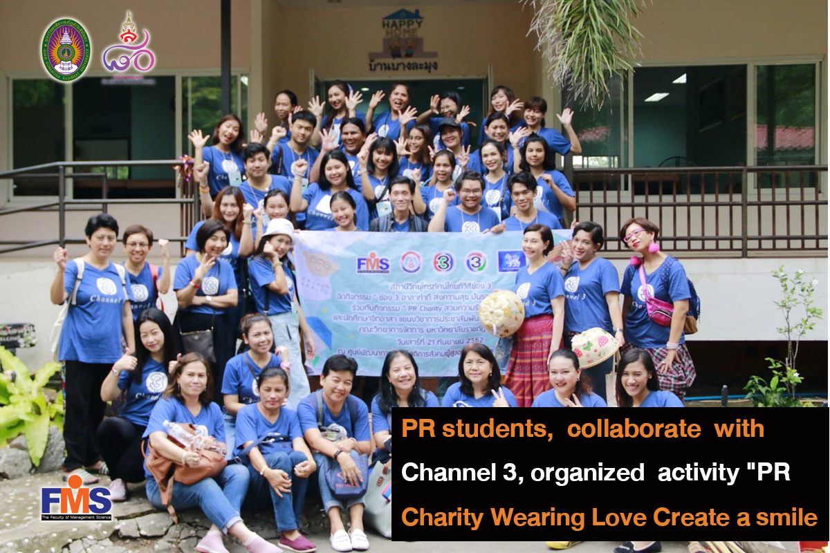 On September 21, 2019, public relations and corporate communication students organized activity "PR Charity Wearing Love, Creating Smiles" that collaboration with Thai TV Channel 3 in the "Channel 3 Volunteers Do Good" project to give happiness to smiles. The elderly "at the Bang Lamung Social Welfare Center. Creating a lot of happiness and smiles for older people. The organizing activities is aimed students to learn experience from real situations. Able to solve immediate problems and prepare to be a quality public relations officer in the future on this occasion, it is considered learning to the future.