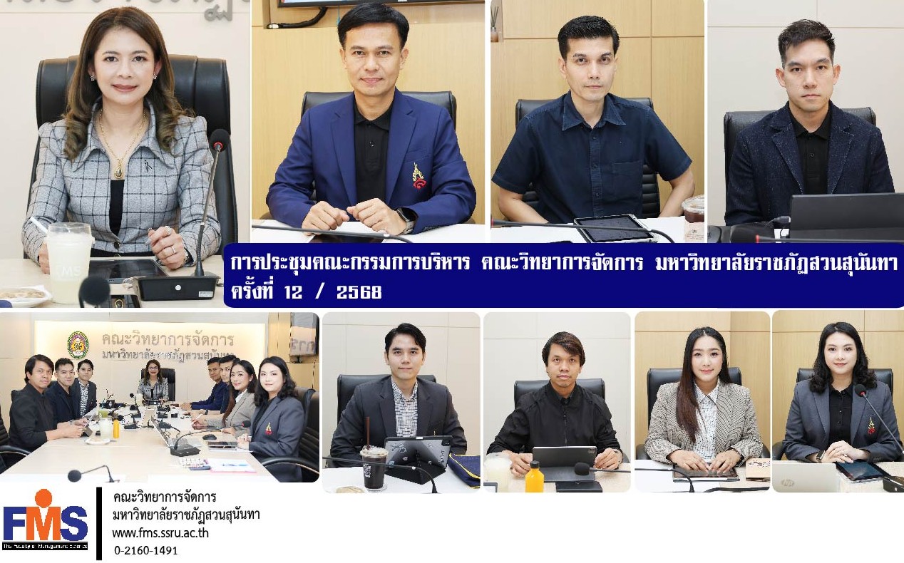 On December 15, 2025, the Faculty of Management Science, Suan Sunandha Rajabhat University, held its 12th/2025 Faculty Executive Committee meeting. Assistant Professor Dr. Chutima Klaysung, Dean of the Faculty of Management Science, chaired the meeting. Various important agenda items were discussed. The Vice Deans and the Head of the Dean's Office also attended the meeting, which was held in the Management Room 1, Faculty of Management Science.