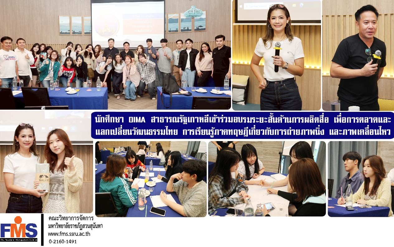 On January 6-7, 2026, the Faculty of Management Science, Suan Sunandha Rajabhat University, organized a short-term training program in media production for marketing and Thai cultural exchange for the 2026 fiscal year. The training focused on "Telling Thai Cultural Stories Through Digital Media," covering theoretical aspects of still photography, various photographic techniques, image interpretation, video theory, and motion picture production. Practical fieldwork involved shooting photos and videos based on assigned tasks. Expert media production speakers provided knowledge to exchange students from Dong Ah Institute of Media and Arts, Republic of Korea. Assistant Professor Dr. Chutima Klaysung, Dean of the Faculty of Management Science, along with the Vice Dean and support staff, participated in the fieldwork activities with the students. The Dean also presented awards to students who won the photography competition based on the assigned tasks. The training atmosphere was filled with fun and memorable moments from the collaborative activities between the two universities, held at OZO North Pattaya Hotel, Chonburi Province.