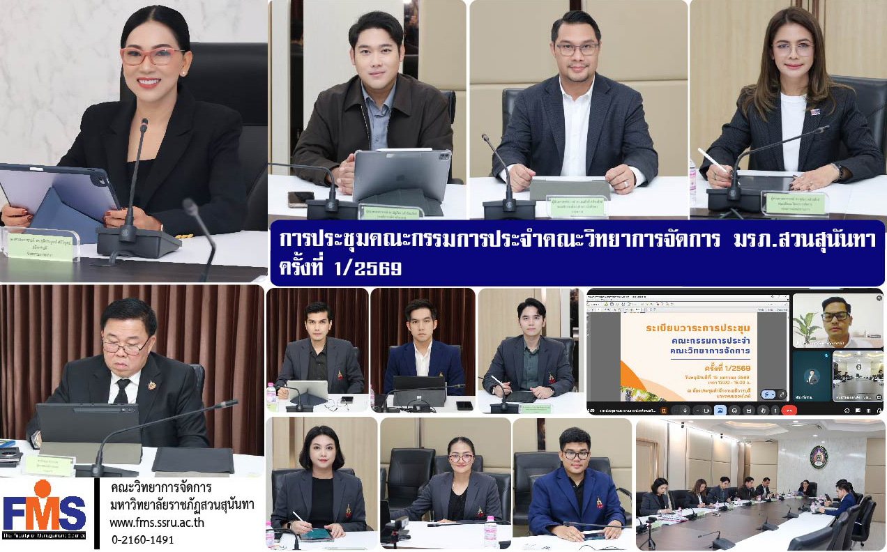 On January 15, 2026, the Faculty of Management Science, Suan Sunandha Rajabhat University, held its first committee meeting of 2026. Associate Professor Dr. Chutikarn Sriviboon, President of Suan Sunandha Rajabhat University, chaired the meeting. Also present were Assistant Professor Dr. Nattaphat Kaewratanaphat, Vice President for Academic Affairs; Assistant Professor Dr. Somsak Klaysung, Vice President for Student Affairs; Assistant Professor Dr. Chutima Klaysung, Dean of the Faculty of Management Science; Assistant Professor Dr. Nattapong Techaratanaset, Vice Dean for Research and Academic Services; Dr. Yutthapoom Thanakitborisut, Vice Dean for Academic Affairs; Dr. Ittiphum Promma, Vice Dean for Planning and Quality Assurance; and Ms. Charinthip Hirannukroh, Acting Head of the Dean's Office. External experts, Dr. Chamlong Chuayrod and Dr. Kritsakorn Sukvechavorakit, faculty members from the Healthcare Business Management Program, College of Management, Mahidol University, and members of the Faculty Committee, attended the meeting in the meeting room of the Office of the President, Building 32, 5th floor, and also online via Google Meet.