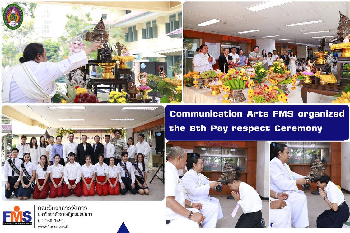 On 7 November 2019, Communication Arts Program , Faculty of Management Science , Suan Sunandha Rajabhat University organized the 8th Communication Arts Paying Ceremony by Assistant Professor Dr. Prateep Wajeethongratana, Dean of the Faculty of Management Science. Honor as the president to light incense, candles, sacrificial offerings to Ganesh.Together with Associate Dean , Head of Communication Arts, staff, students, and alumni attend the ceremony on the 1st floor of Building 56, Faculty of Management Science.