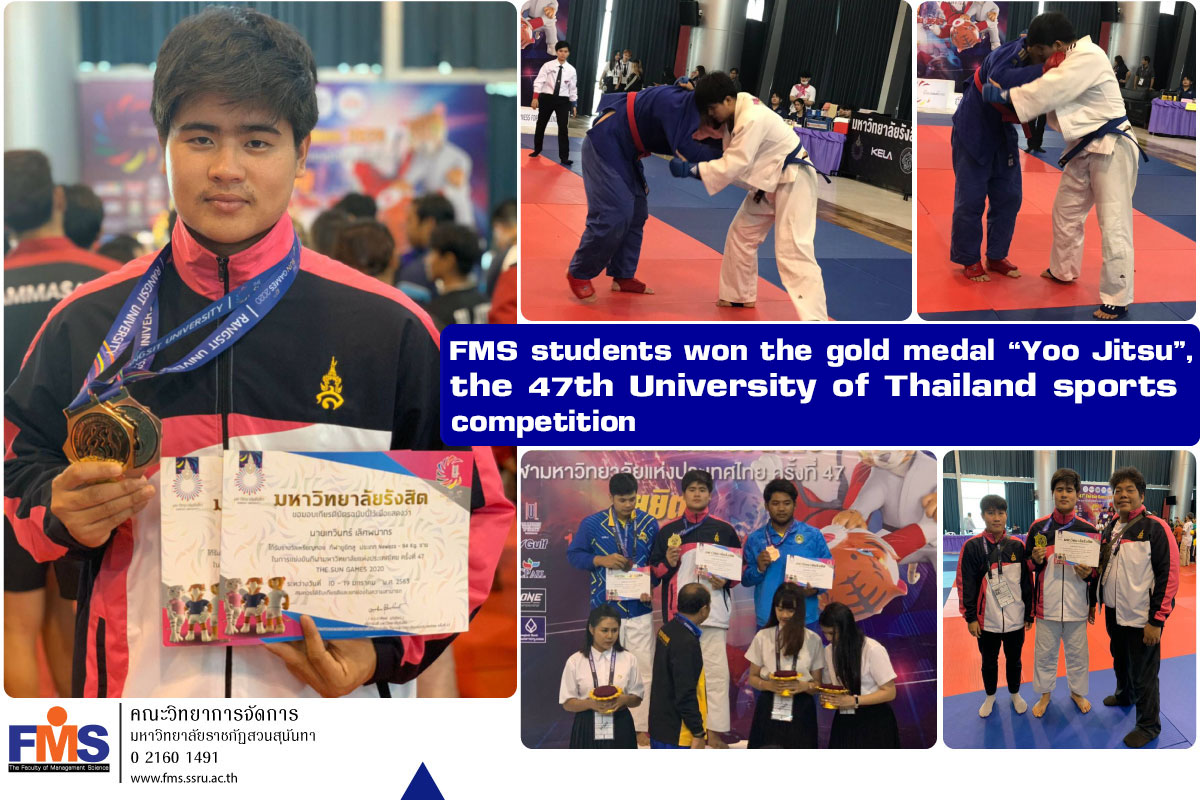 Faculty of Management Science ,Suan Sunandha Rajabhat University congratulations to Mr. Devin Lertpanakorn, Business Computer Program student won the gold medal “The Newaza 94kg” Male Jujitsu Competition, the 47th Thailand University Athletics, THE SUN GAMES 2020, between 10-19 January 2020 at Rangsit University.