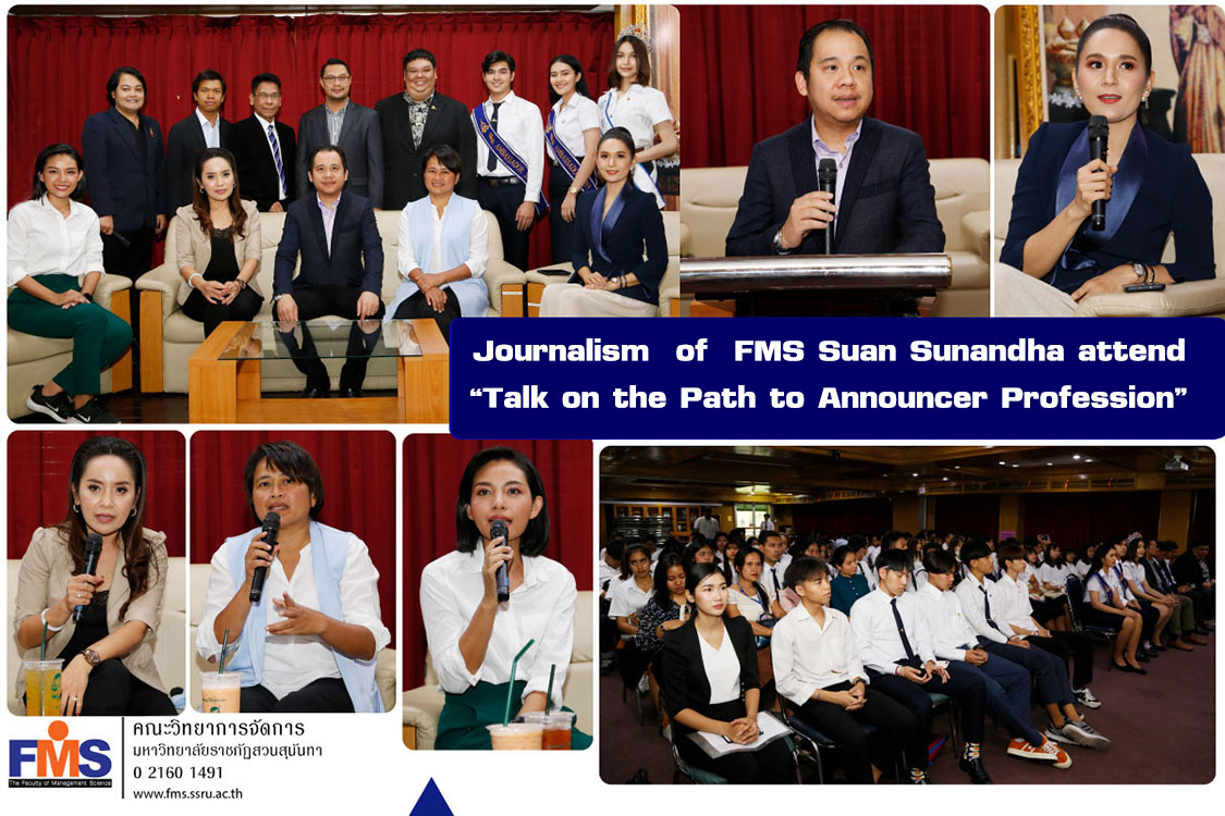 Journalism Faculty of Management Science In collaboration with the Creative Media Club Suan Sunandha Rajabhat University holds a talk on "Path to Announcer Professionals" for the year 2020. Inviting 4 professional channel announcers. Join the tutoring to prepare students for the path to evangelism.