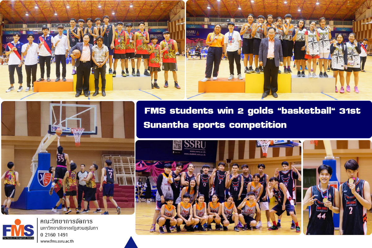 Students of the Faculty of Management Science Suan Sunandha Rajabhat University won 2 gold medals in men's and women's basketball competitions. Which is one of the 31 Sunandha Unity Games "Friendship over victory" by Assistant Professor Dr. Chonnat Minanan, Vice President for Student Affairs Is the chairman of the medal at the stadium, health and sports center building Suan Sunandha Rajabhat University.