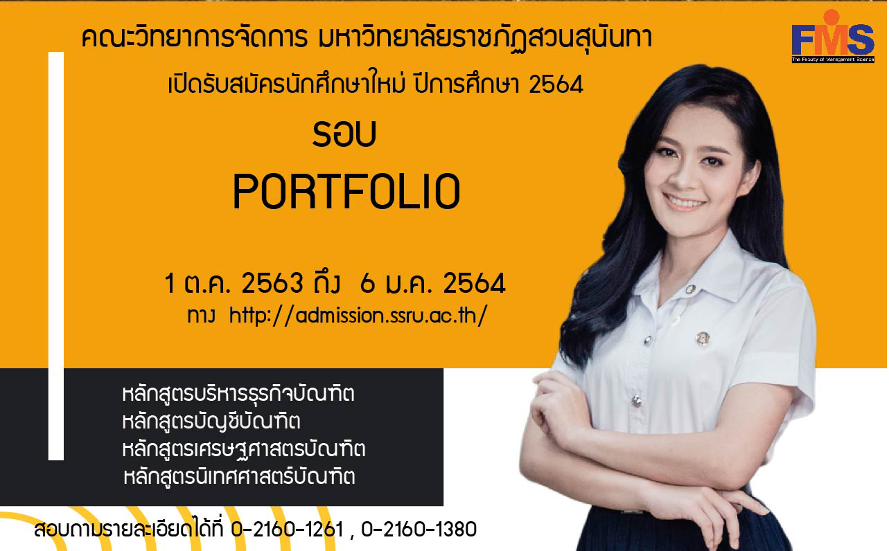 คณะวิทยาการจัดการ มหาวิทยาลัยราชภัฏสวนสุนันทา เปิดรับสมัครนักศึกษาใหม่ ระดับปริญญาตรี ภาคปกติ ประจำปีการศึกษา 2564 (รอบที่ 1 Portfolio)