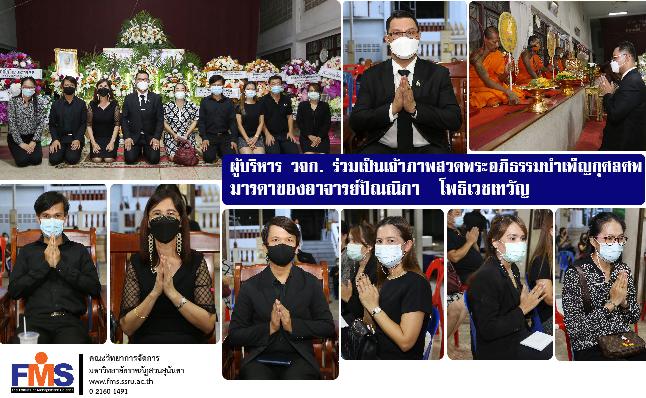 เมื่อค่ำวันที่ 17 มิถุนายน 2564 มหาวิทยาลัยราชภัฏสวนสุนันทาร่วมกับคณะวิทยาการจัดการ เป็นเจ้าภาพในงานสวดพระอภิธรรมบำเพ็ญกุศลศพ มารดาของอาจารย์ปัณณิกา โพธิเวชเทวัญ อาจารย์ประจำแขนงวิชาการตลาด คณะวิทยาการจัดการ ในการนี้ผู้ช่วยศาสตราจารย์ ดร.สมศักดิ์ คล้ายสังข์ คณบดีคณะวิทยาการจัดการ เป็นผู้แทนมหาวิทยาลัย พร้อมด้วยรองคณบดี อาจารย์ และบุคลากรสายสนับสนุนวิชาการประจำคณะ ร่วมพิธีสวดพระอภิธรรมบำเพ็ญกุศล ณ วัดคงคา ตำบลบางม่วง อำเภอบางใหญ่ จังหวัดนนทบุรี