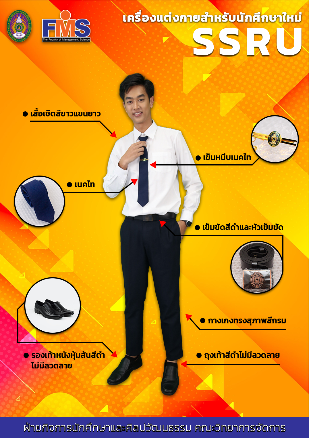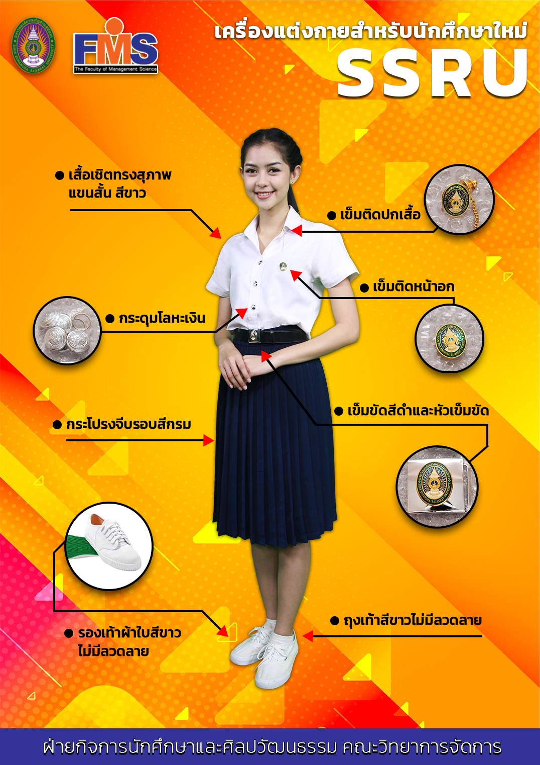 เครื่องแบบชุดนักศึกษาชายและหญิงที่ถูกต้องตามระเบียบของมหาวิทยาลัย
