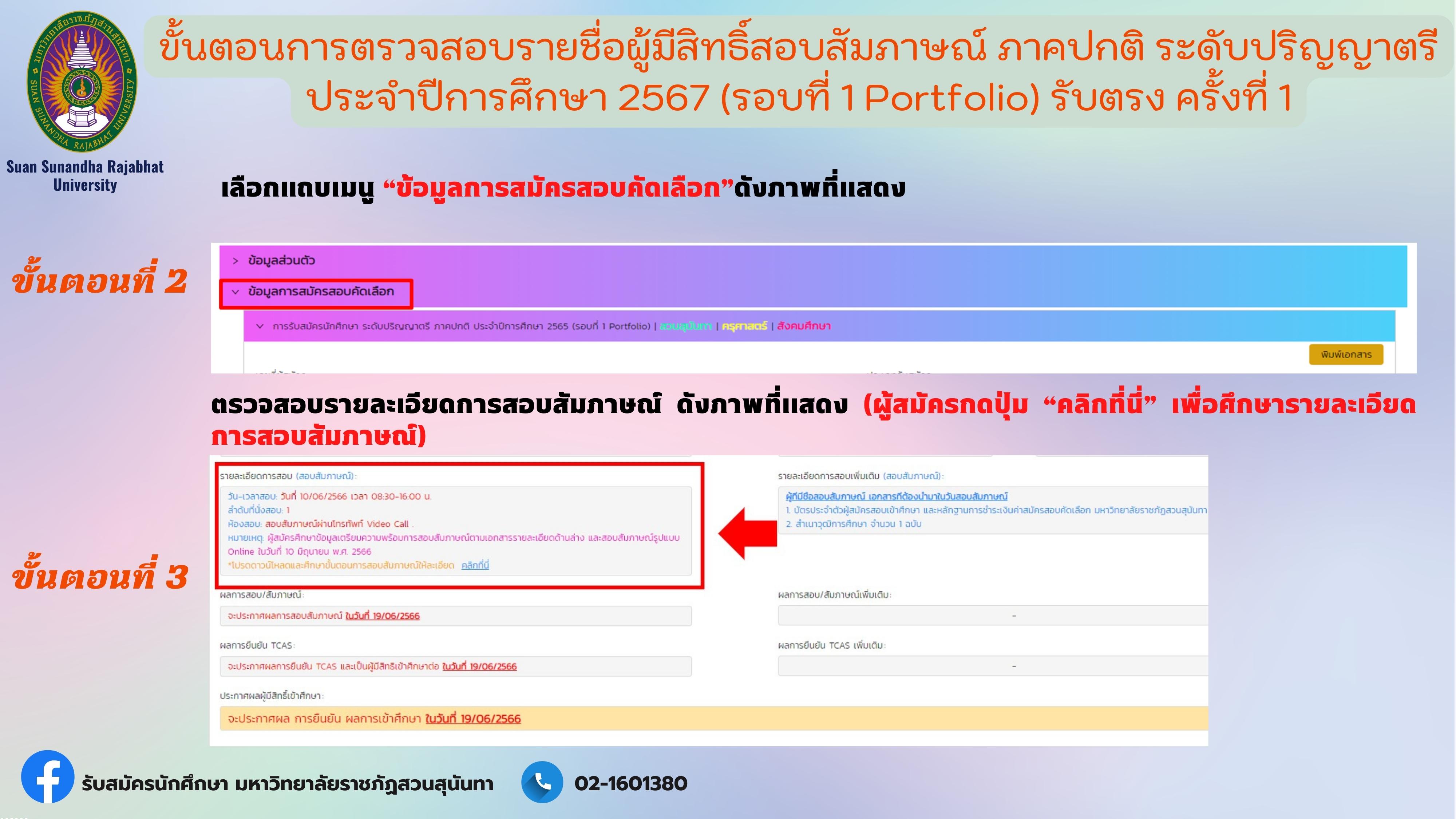 มหาวิทยาลัยราชภัฏสวนสุนันทา ประกาศรายชื่อผู้มีสิทธิ์สอบสัมภาษณ์ ภาคปกติ ระดับปริญญาตรี ประจำปีการศึกษา 2567 (รอบที่ 1 Portfolio) รับตรง ครั้งที่ 1