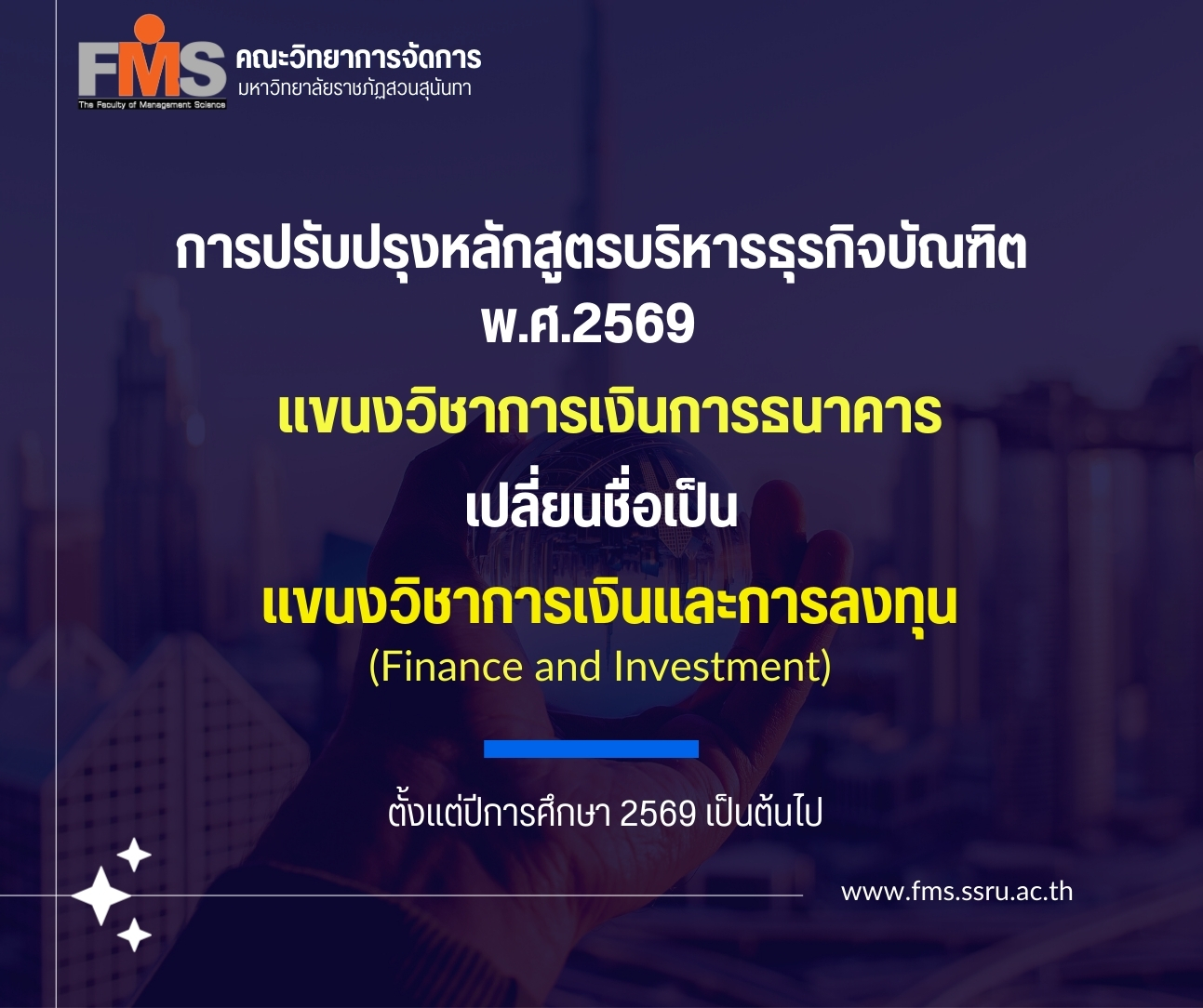 หน้าหลัก > ข่าว > ข่าวประชาสัมพันธ์ > การปรับปรุงหลักสูตรบริหารธุรกิจบัณฑิต พ.ศ.2569 แขนงวิชาการเงินการธนาคาร เปลี่ยนชื่อเป็น แขนงวิชาการเงินและการลงทุน