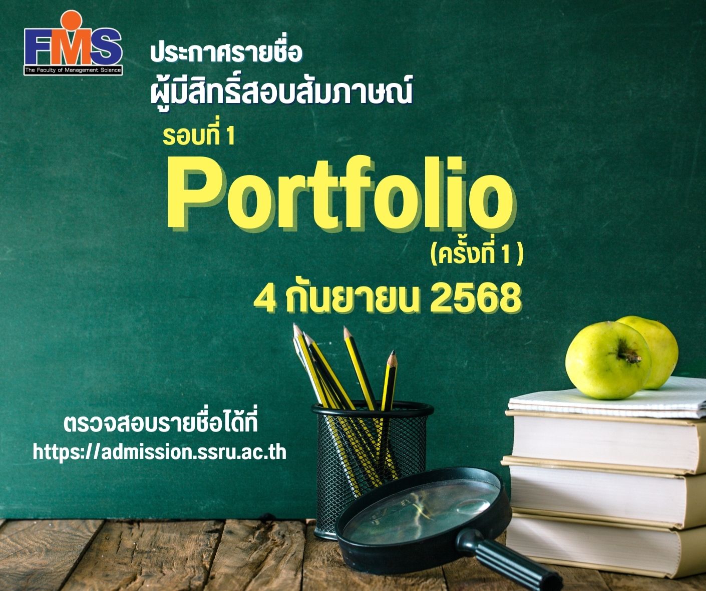 ประกาศรายชื่อ ผู้มีสิทธิ์สอบสัมภาษณ์ รอบที่ 1 Portfolio (ครั้งที่ 1 )