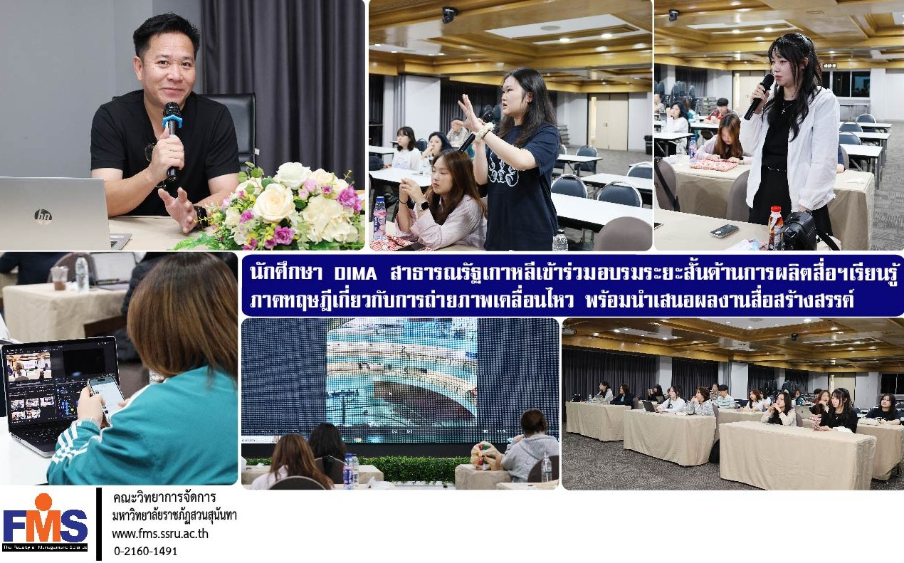 เมื่อวันที่ 9 มกราคม 2569 คณะวิทยาการจัดการ มหาวิทยาลัยราชภัฏสวนสุนันทา จัดโครงการอบรมระยะสั้นด้านการผลิตสื่อเพื่อการตลาด และแลกเปลี่ยนวัฒนธรรมไทย ประจำปีงบประมาณ 2569 ซึ่งเป็นการอบรมเรียนรู้ภาคทฤษฎีเกี่ยวกับการถ่ายภาพเคลื่อนไหว พร้อมนำเสนอผลงานสื่อสร้างสรรค์ จากการลงพื้นที่ปฏิบัติของนักศึกษานักศึกษาแลกเปลี่ยนจาก Dong Ah Institute of Media and Arts สาธารณรัฐเกาหลี ซึ่งได้รับเกียรติจากวิทยากรผู้เชี่ยวชาญด้านการผลิตสื่อ เป็นวิทยากรบรรยายให้ความรู้และให้ข้อเสนอแนะผลงานของนักศึกษาที่นำเสนอ ณ ห้องประชุมสุวพักตร์นิเวศน์ (5724) คณะวิทยาการจัดการ
