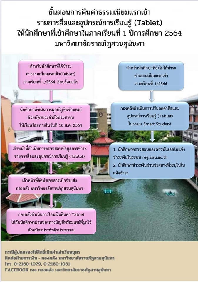 ขั้นตอนการคือค่าธรรมเนียมแรกเข้า รายการสื่อและอุปกรณ์การเรียนรู้ (Tablet) ให้นักศึกษาที่เข้าศึกษาในภาคเรียนที่ 1 ปีการศึกษา 2564