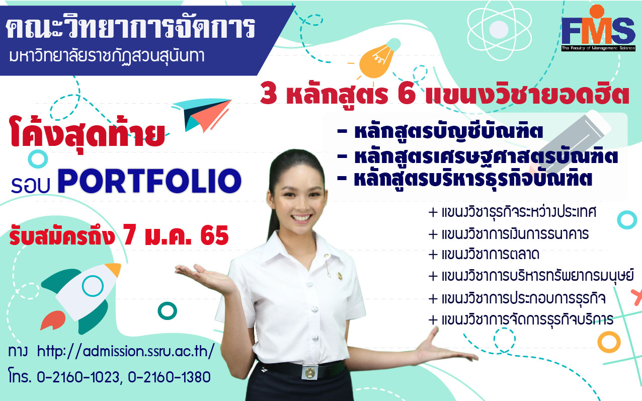 คณะวิทยาการจัดการ มหาวิทยาลัยราชภัฏสวนสุนันทา เปิดรับสมัครนักศึกษาใหม่ ระดับปริญญาตรี ประจำปีการศึกษา 2565