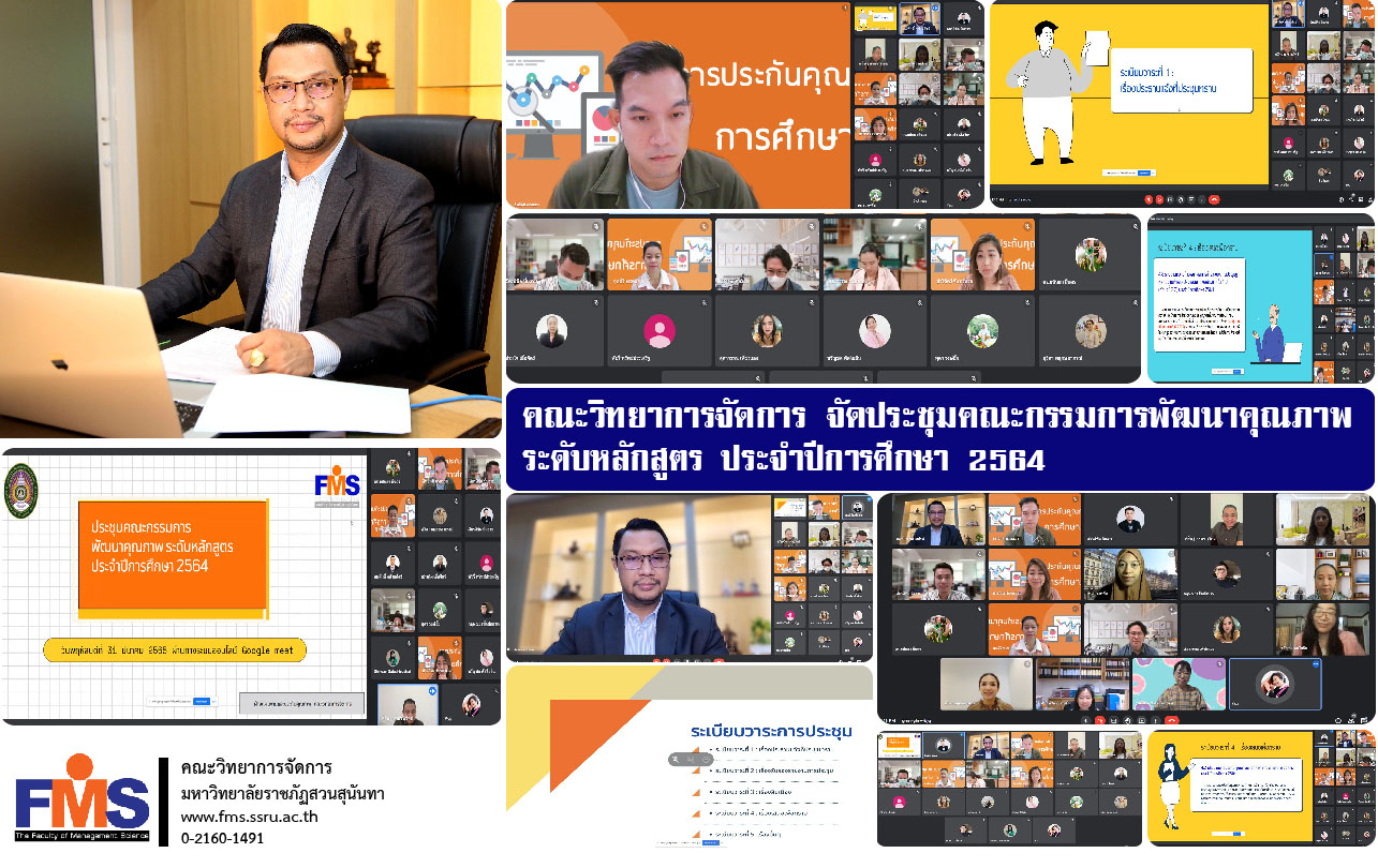 วันที่ 31 มีนาคม 2565 ฝ่ายแผนงานและประกันคุณภาพ คณะวิทยาการจัดการ จัดประชุมคณะกรรมการพัฒนาคุณภาพระดับหลักสูตร ประจำปีการศึกษา 2564 โดยผู้ช่วยศาสตราจารย์ ดร.สมศักดิ์ คล้ายสังข์ คณบดีคณะวิทยาการจัดการ เป็นประธานการประชุม ร่วมด้วยอาจารย์ ดร.อิทธิภูมิ พรหมมา รองคณบดีฝ่ายแผนงานและประกันคุณภาพ อาจารย์ ดร.กฤษณะ เชื้อชัยนาท รองคณบดีฝ่ายวิชาการ ร่วมประชุมและชี้แจงตามนโยบายการประกันคุณภาพการศึกษาของคณะฯ เพื่อให้การดำเนินงานด้านประกันคุณภาพมีความสอดคล้องและเป็นไปในทิศทางเดียวกัน รวมทั้งการเตรียมความพร้อมการเข้ารับการตรวจประกันคุณภาพระดับหลักสูตร ประจำปีการศึกษา 2564 และวาระอื่นๆที่เกี่ยวข้อง มีหัวหน้ากลุ่มสาขาวิชาบริหารธุรกิจ หัวหน้าสาขาวิชา หัวหน้าแขนงวิชา และบุคลากรสายสนับสนุนวิชาการที่เกี่ยวข้อง เข้าร่วมประชุม ผ่านระบบออนไลน์ Google Meet