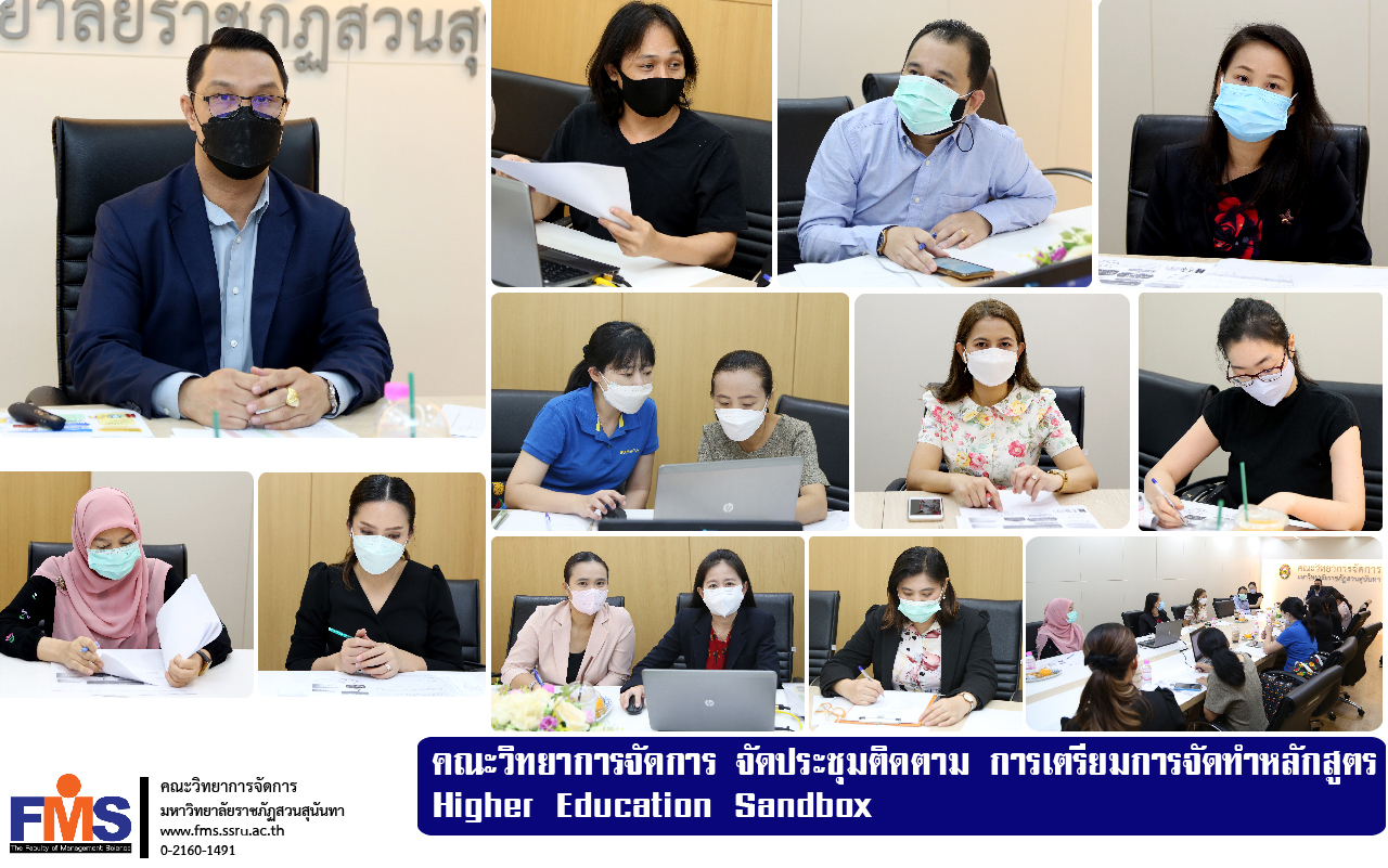 วันที่ 21 เมษายน 2565 คณะวิทยาการจัดการ มหาวิทยาลัยราชภัฏสวนสุนันทา จัดประชุมหัวหน้ากลุ่มสาขาวิชาบริหารธุรกิจ หัวหน้าสาขาวิชา และหัวหน้าแขนงวิชา ครั้งที่ 4/2565 โดยผู้ช่วยศาสตราจารย์ ดร.สมศักดิ์ คล้ายสังข์ คณบดีคณะวิทยาการจัดการ เป็นประธานการประชุม พร้อมด้วยอาจารย์ ดร.กฤษณะ เชื้อชัยนาท รองคณบดีฝ่ายวิชาการ เพื่อติดตามการขอเปิดหลักสูตรการศึกษาที่แตกต่างจากมาตรฐานการอุดมศึกษา (Higher Education Sandbox) และวาระอื่นๆที่เกี่ยวข้อง มีหัวหน้ากลุ่มสาขาวิชาบริหารธุรกิจ หัวหน้าสาขาวิชา และหัวหน้าแขนงวิชา เข้าร่วมประชุม ณ ห้องประชุมรวมใจการจัดการ 1 อาคาร 56