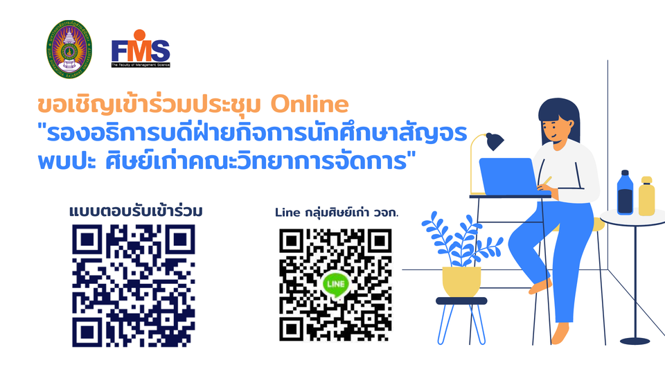 คณะวิทยาการจัดการ ขอเรียนเชิญศิษย์เก่าคณะวิทยาการจัดการ ทุกท่านร่วมประชุมรองอธิการบดีฝ่ายกิจการนักศึกษาสัญจร พบปะศิษย์เก่า วจก. (Online) ในวันที่ 29 พฤษภาคม 2565 เวลา 11.00 - 12.00 น.