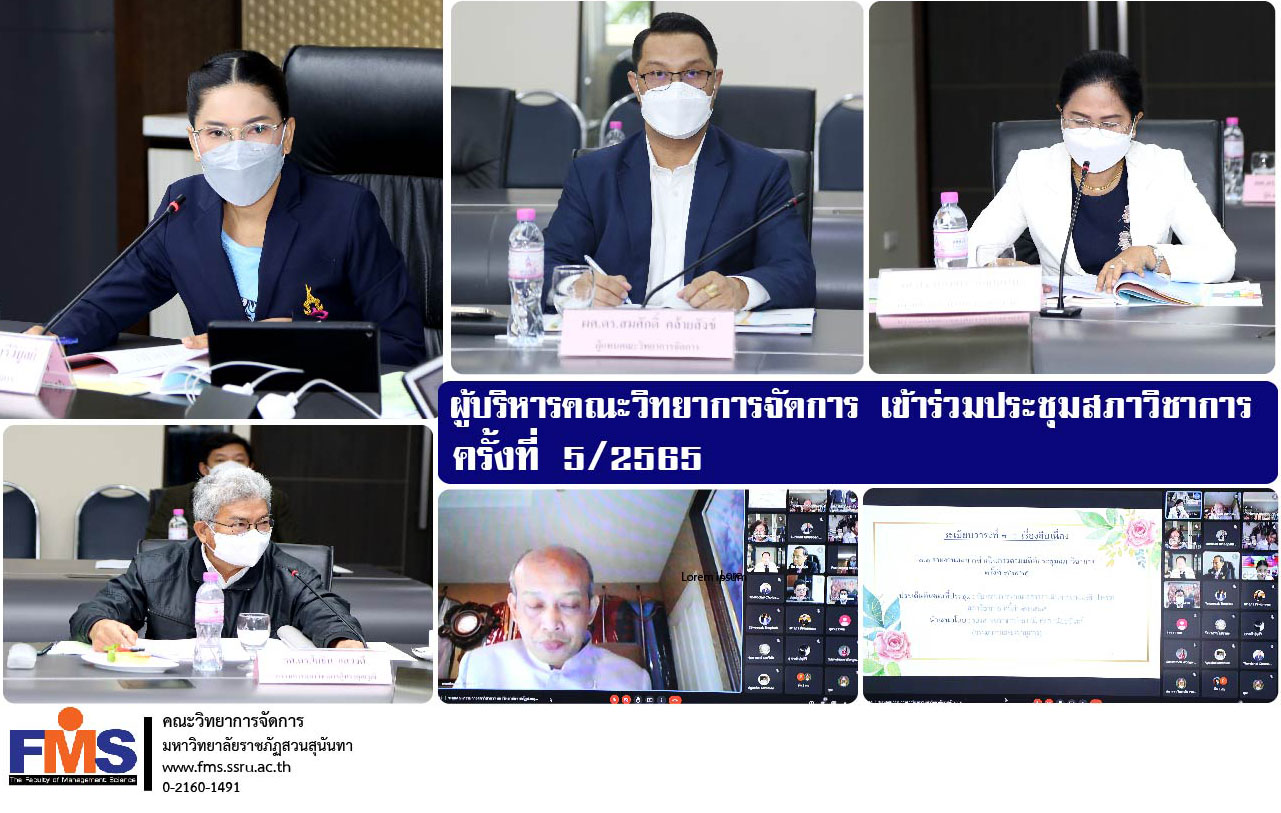 วันที่ 11 พฤษภาคม 2565 เวลา 09.30 น. ผู้ช่วยศาสตราจารย์ ดร.สมศักดิ์ คล้ายสังข์ คณบดีคณะวิทยาการจัดการ เข้าร่วมประชุมสภาวิชาการ ครั้งที่ 5/2565 โดยรองศาสตราจารย์ ดร.ชุติกาญจน์ ศรีวิบูลย์ อธิการบดีมหาวิทยาลัยราชภัฏสวนสุนันทา เป็นประธานการประชุม พร้อมด้วยรองศาสตราจารย์ ดร.นันทิยา น้อยจันทร์ รองอธิการบดีฝ่ายวิชาการ ณ ห้องประชุมสภามหาวิทยาลัยอาคาร 31 ชั้น 5 และการประชุมออนไลน์ผ่านโปรแกรม Google Meet