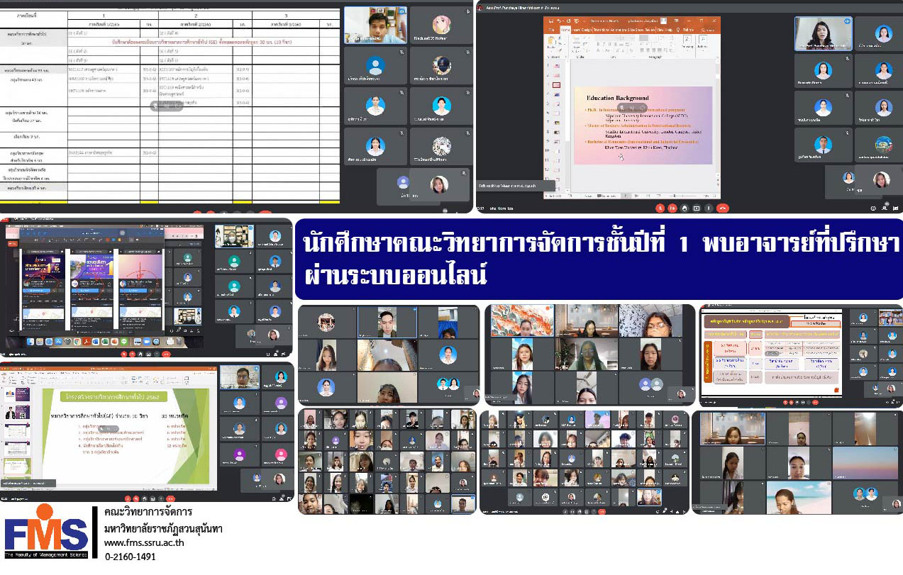 วันที่ 1 กรกฎาคม 2565 คณะวิทยาการจัดการ มหาวิทยาลัยราชภัฏสวนสุนันทา จัดกิจกรรม นักศึกษาคณะวิทยาการจัดการ ชั้นปีที่ 1 ทุกสาขาวิชาและแขนงวิชา พบอาจารย์ที่ปรึกษา พร้อมรับฟังคำชี้แจง คำแนะนำในการเรียนการสอน ผ่านระบบออนไลน์ด้วยโปรแกรม Google Meet โดยกิจกรรมดังกล่าวจัดขึ้นเพื่อเป็นส่งเสริมสนับสนุนให้นักศึกษาคณะวิทยาการจัดการ ประจำปีการศึกษา 2565 ได้พบปะพูดคุยกับอาจารย์ที่ปรึกษา และยังจะเป็นประโยชน์ต่อนักศึกษาทั้งในเรื่องของการเรียน และการใช้ชีวิตในมหาวิทยาลัยอีกด้วย