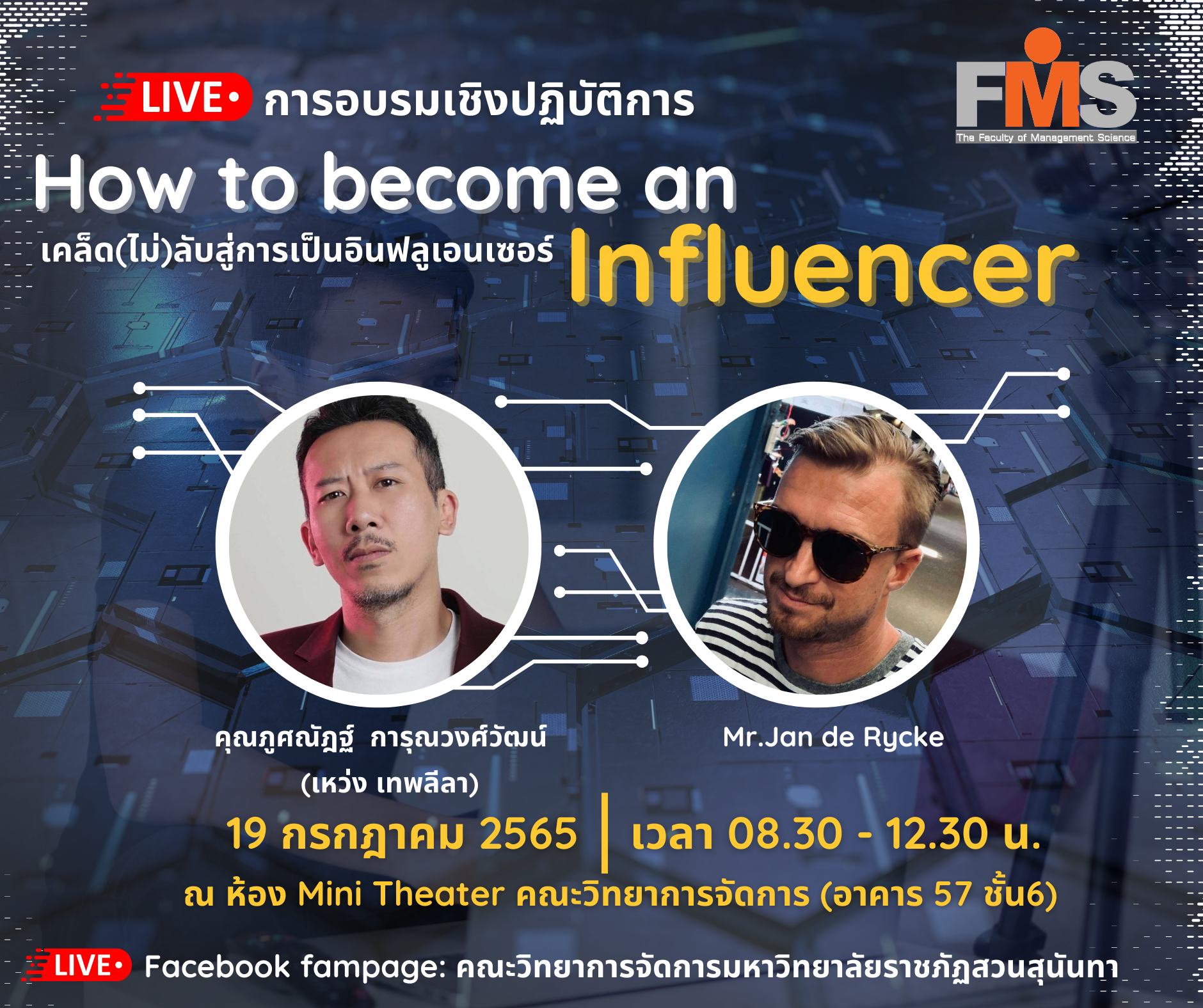 คณะวิทยาการจัดการ มหาวิทยาลัยราชภัฏสวนสุนันทา ขอเชิญนักศึกษาและผู้สนใจ เข้าร่วมอบรมเชิงปฏิบัติการ เรื่อง How to become an Influencer เคล็ด(ไม่)ลับสู่การเป็นอินฟลูเอนเซอร์