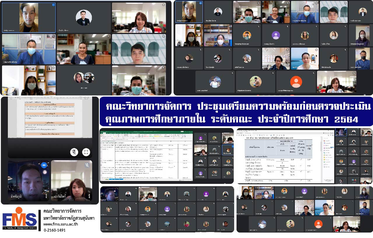 วันที่ 5 สิงหาคม 2565 คณะวิทยาการจัดการ มหาวิทยาลัยราชภัฏสวนสุนันทา จัดประชุมเตรียมความพร้อมก่อนตรวจประเมินคุณภาพการศึกษาภายใน ระดับคณะ ประจำปีการศึกษา 2564 โดยมีอาจารย์ ดร.อิทธิภูมิ พรหมมา รองคณบดีฝ่ายแผนงานและประกันคุรภาพ เป็นประธานการประชุม มีรองคณบดี และบุคลากรสายสนับสนุนวิชาการเข้าร่วมการประชุม ในรูปแบบการประชุมออนไลน์ด้วยโปรแกรม Google Meet