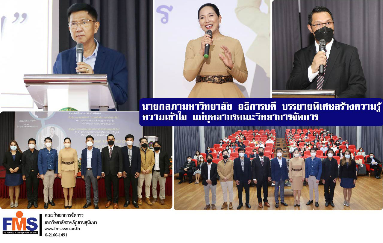 วันที่ 10 สิงหาคม 2565 คณะวิทยาการจัดการ มหาวิทยาลัยราชภัฏสวนสุนันทา จัดการประชุมเชิงปฏิบัติการ ประจำปี 2565 โดยได้รับเกียรติจากรองศาสตราจารย์ ดร.ฤาเดช เกิดวิชัย นายกสภามหาวิทยาลัยราชภัฏสวนสุนันทา บรรยายพิเศษ หัวข้อ “ กระบวนทัศน์ การพลิกโฉมมหาวิทยาลัย” และรองศาสตราจารย์ ดร.ชุติกาญจน์ ศรีวิบูลย์ อธิการบดีมหาวิทยาลัยราชภัฏสวนสุนันทา ให้เกียรติบรรยายพิเศษ หัวข้อ “การอยู่รอดของมหาวิทยาลัยในยุคดิจิทัล และในโอกาสนี้ผู้ช่วยศาสตราจารย์ ดร.สมศักดิ์ คล้ายสังข์ คณบดีคณะวิทยาการจัดการ บรรยาย หัวข้อ “แนวทางปฏิบัติงานคณะวิทยาการจัดการ” ทั้งนี้เพื่อสร้างความรู้ความเข้าใจให้กับผู้บริหาร คณาจารย์และบุคลากรคณะวิทยาการจัดการ เกี่ยวกับการนำแผนยุทธศาสตร์ของมหาวิทยาลัยลงสู่การปฏิบัติ ภายใต้การปรับเปลี่ยนบริบทของมหาวิทยาลัยหลายด้าน มีผู้บริหาร คณจารย์ บุคลากรสายสนับสนุนวิชาการประจำคณะเข้าร่วมประชุม ณ ห้อง Mini Theater อาคาร 57 ชั้น 6