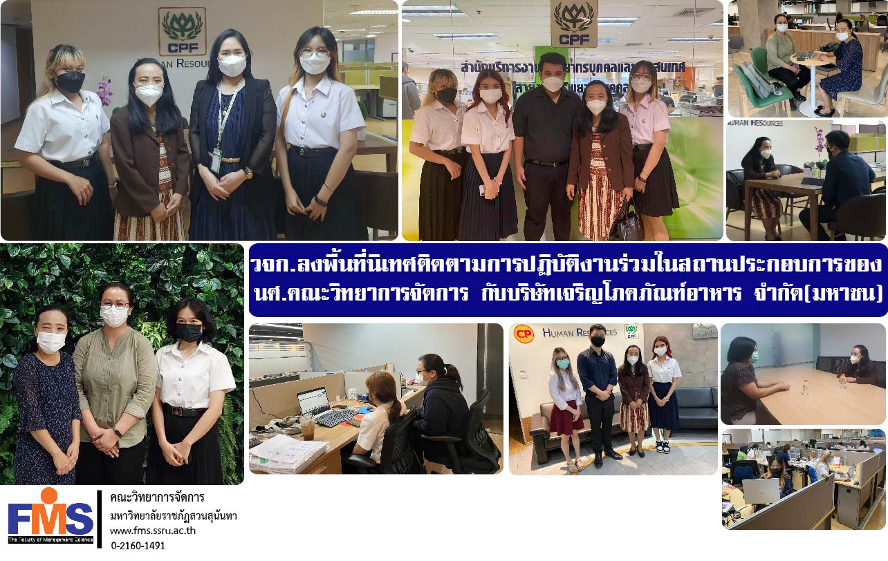 เมื่อเร็วๆนี้ อาจารย์เปรมใจ เอื้อจิตร หัวหน้าแขนงวิชาการบริหารทรัพยากรมนุษย์ คณะวิทยาการจัดการ ลงพื้นที่นิเทศติดตามการปฏิบัติงานร่วมในสถานประกอบการสำนักงานใหญ่ บริษัท เจริญโภคภัณฑ์อาหาร จำกัด (มหาชน) ของนักศึกษาแขนงวิชาการบริหารทรัพยากรมนุษย์ คณะวิทยาการจัดการ ประกอบด้วย สำนักบริหารงานบุคคลและสารสนเทศ ด้านพัฒนาองค์กร ด้านสรรหาและคัดเลือก มีบุคลากร พี่เลี้ยงประจำฝ่ายให้การต้อนรับ ณ บริษัท ซีพีเอฟ เทรดดิ้ง จำกัด อาคารซี.พี.ทาวเวอร์ 2 (ฟอร์จูนทาวน์) ถนนรัชดาภิเษก กรุงเทพมหานคร