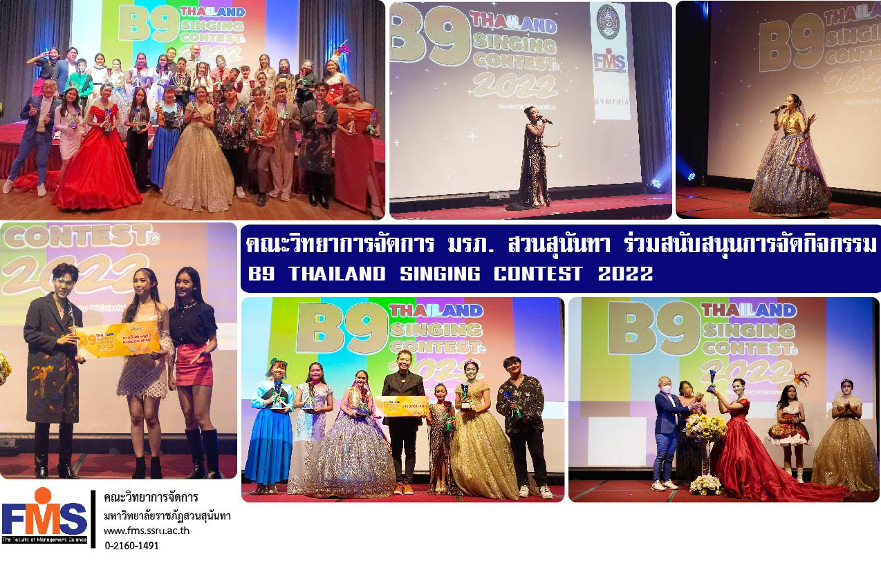 เมื่อวันที่ 27 สิงหาคม 2565 บริษัท บริดจ์ ไนน์ จำกัด และ B9 ENTERTAINMENT / B9 MUSIC THAILAND / B9 MEDIA จัดกิจกรรมการประกวดร้องเพลง B9 THAILAND SINGING CONTEST 2022 [ บีไนน์ ไทยแลนด์ ซิงกิ้ง คอนเทสต์ 2022] โดยคณะวิทยาการจัดการ มหาวิทยาลัยราชภัฏสวนสุนันทา ได้ร่วมสนับสนุนการจัดกิจกรรม โดยการให้ความอนุเคราะห์เอื้อเฟื้อด้านสถานที่ วัสดุอุปกรณ์ที่เกี่ยวข้องกับการดำเนินการจัดกิจกรรม ณ ห้อง Mini Theater คณะวิทยาการจัดการ (อาคาร 57 ชั้น 6) มหาวิทยาลัยราชภัฏสวนสุนันทา ซึ่งเป็นไปตามบันทึกความเข้าใจร่วมกันระหว่างคณะวิทยาการจัดการ มหาวิทยาลัยราชภัฏสวนสุนันทากับบริษัท บริดจ์ ไนน์ จำกัด ในการดำเนินการจัดกิจกรรม/โครงการตามวัตถุประสงค์ เพื่อเปิดพื้นที่ส่งเสริมเยาวชนได้มีเวทีในการแสดงความสามารถ ศักยภาพออกสู่สาธารณชน ที่สำคัญถือเป็นการสนับสนุนศักยภาพด้านความสามารถพิเศษของเยาวชนได้อย่างมีประสิทธิภาพ
