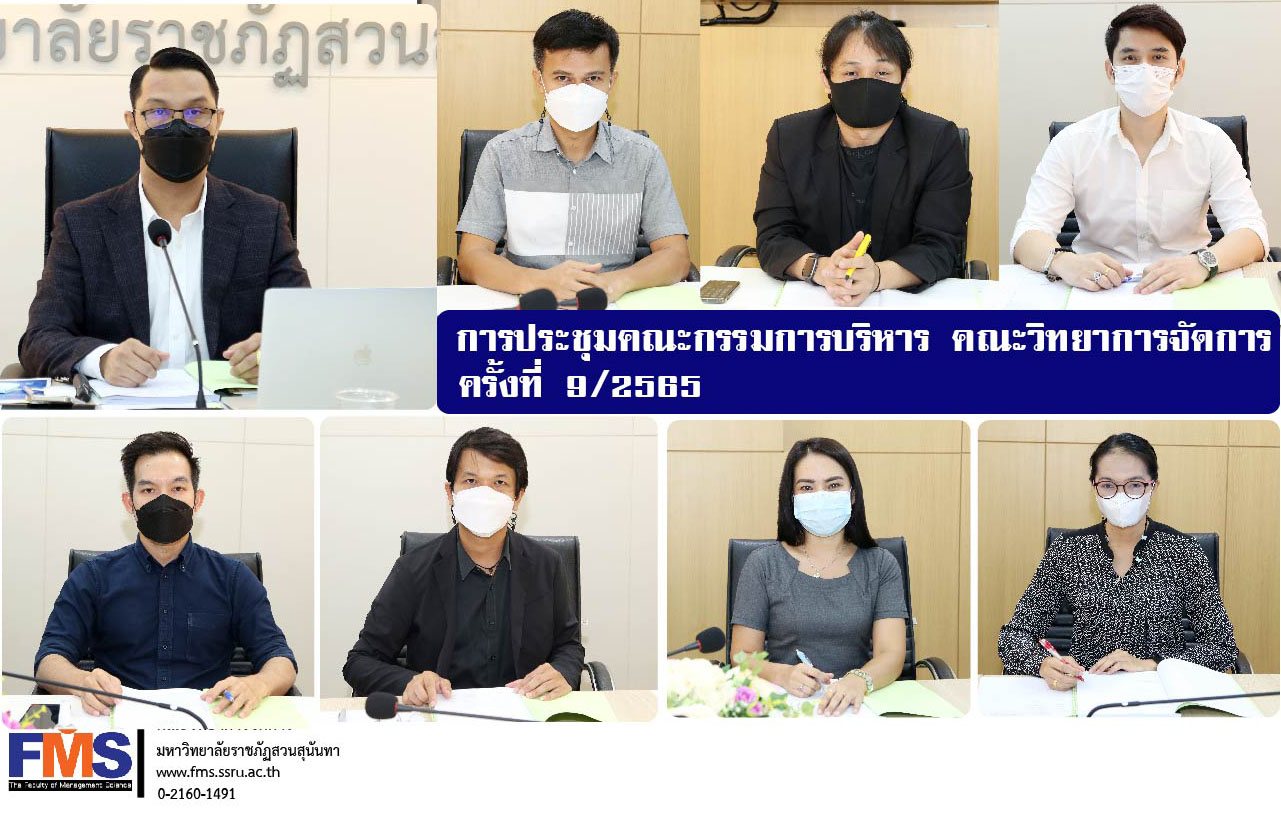 วันที่ 15 กันยายน 2565 คณะวิทยาการจัดการ มหาวิทยาลัยราชภัฏสวนสุนันทา จัดประชุมคณะกรรมการบริหารคณะ ครั้งที่ 9 /2565 โดยผู้ช่วยศาสตราจารย์ ดร.สมศักดิ์ คล้ายสังข์ คณบดีคณะวิทยาการจัดการ เป็นประธานการประชุม พร้อมด้วยรองคณบดี หัวหน้าสำนักงานคณบดี และหัวหน้าฝ่ายบริหารงานทั่วไป เข้าร่วมประชุม ณ ห้องประชุมรวมใจการจัดการ คณะวิทยาการจัดการ