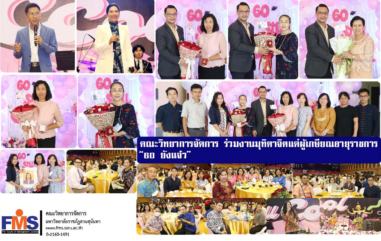 ในโอกาสนี้ผู้ช่วยศาสตราจารย์ ดร.สมศักดิ์ คล้ายสังข์ คณบดีคณะวิทยาการจัดการ พร้อมด้วยรองคณบดี คณาจารย์ และบุคลากรสายสนับสนุนวิชาการ คณะวิทยาการจัดการ เข้าร่วมงานพร้อมมอบของที่ระลึกและช่อดอกไม้แด่ผู้เกษียณอายุราชการ ซึ่งในปีนี้คณะวิทยาการจัดการ มีอาจารย์เกษียณอายุราชการ จำนวน 3 ท่าน ได้แก่ รองศาสตราจารย์ ร้อยตำรวจเอกหญิงอรุณรุ่ง วงศ์กังวาน อาจารย์ประจำแขนงวิชาการเงินการธนาคาร ผู้ช่วยศาสตราจารย์ ดร.ธัมมามนตร์ คุณรัตนาภรณ์ และอาจารย์ปัณณิกา โพธิเวชเทวัญ อาจารย์ประจำแขนงวิชาการตลาด ภายในงานมีกิจกรรมต่างๆ อาทิ การแสดงจากคณะศิลปกรรมศาสตร์ การฉายวีดีทัศน์แนะนำผู้เกษียณอายุราชการและผู้แทนผู้เกษียณอายุราชการกล่าวแสดงความรู้สึก การมอบของขวัญ ของที่ระลึกแด่ผู้เกษียณอายุราชการ การแสดงจากศิลปินรับเชิญ คุณรัชนก ศรีโลพันธุ์ ท่ามกลางบรรยากาศที่เต็มไปด้วยความรัก มิตรภาพ และความอบอุ่น