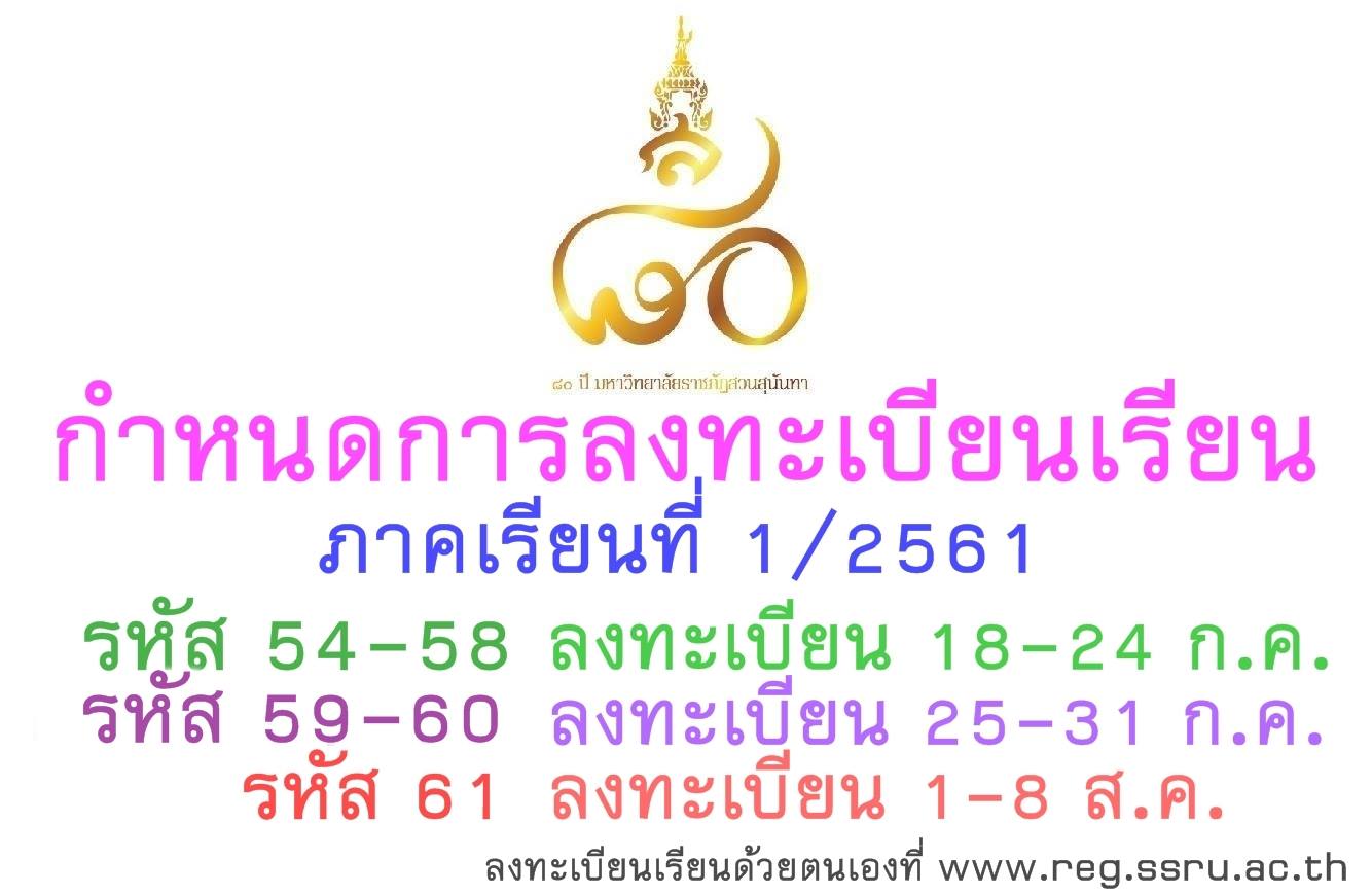 กำหนดการลงทะเบียนเรียนด้วยตนเอง สำหรับนักศึกษาระดับปริญญาตรี ปริญญาตรี 5 ปีทุกภาค ประจำภาคเรียนที่ 1 ประจำปีการศึกษา 2561