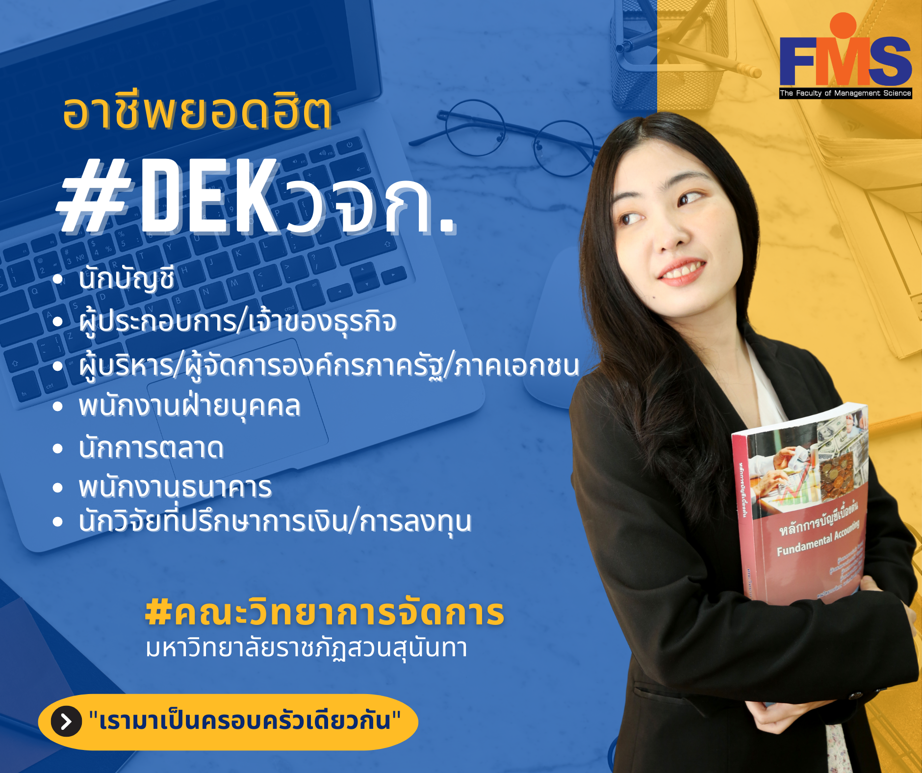 คณะวิทยาการจัดการ มีรุ่นพี่ที่ประสบความสำเร็จเป็นจำนวนมาก วันนี้ขอนำเสนออาชีพยอดฮิตของเด็ก วจก. มาฝากกันน๊าาา น้องๆที่กำลังตัดสินใจเลือกเรียน เรามีสาขา/แขนงวิชาให้เลือกมากมาย ตอบโจทย์อนาคตให้กับน้องๆว่าที่นักบริหารธุรกิจ นักบัญชี นักเศรษฐศาสตร์รุ่นใหม่ในอนาคต เตรียมเล่ม Portfolio กันให้พร้อมน๊าาา อีกไม่กี่วัน เปิดรับสมัครแว้วววว