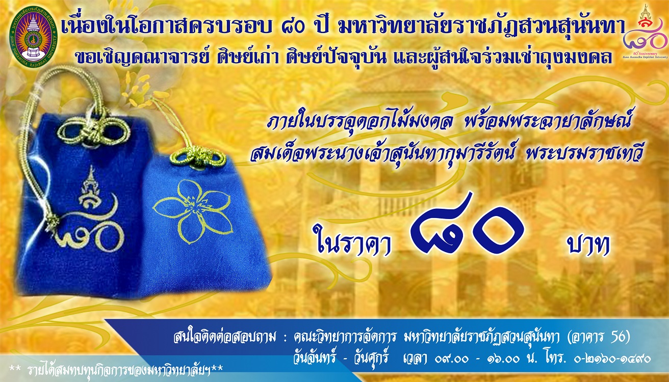 ประชาสัมพันธ์การเช่าถุงมงคล เนื่องในโอกาสครบรอบ 80 ปี มหาวิทยาลัยราชภัฏสวนสุนันทา
