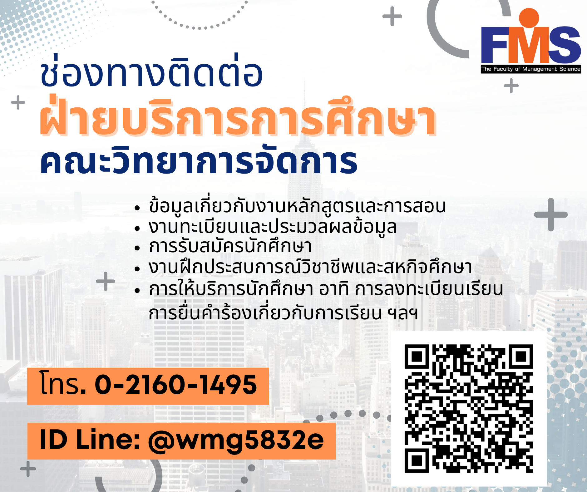 ประชาสัมพันธ์ช่องทางการติดต่อฝ่ายบริการการศึกษา คณะวิทยาการจัดการ