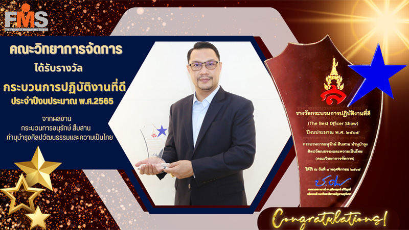 คณะวิทยาการจัดการ มหาวิทยาลัยราชภัฏสวนสุนันทา ได้รับรางวัลกระบวนการปฏิบัติงานที่ดี ประจำปีงบประมาณ พ.ศ.2565 จากผลงานกระบวนการอนุรักษ์ สืบสาน ทำนุบำรุงศิลปวัฒนธรรมและความเป็นไทย